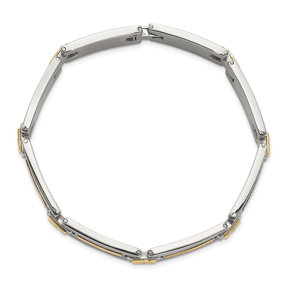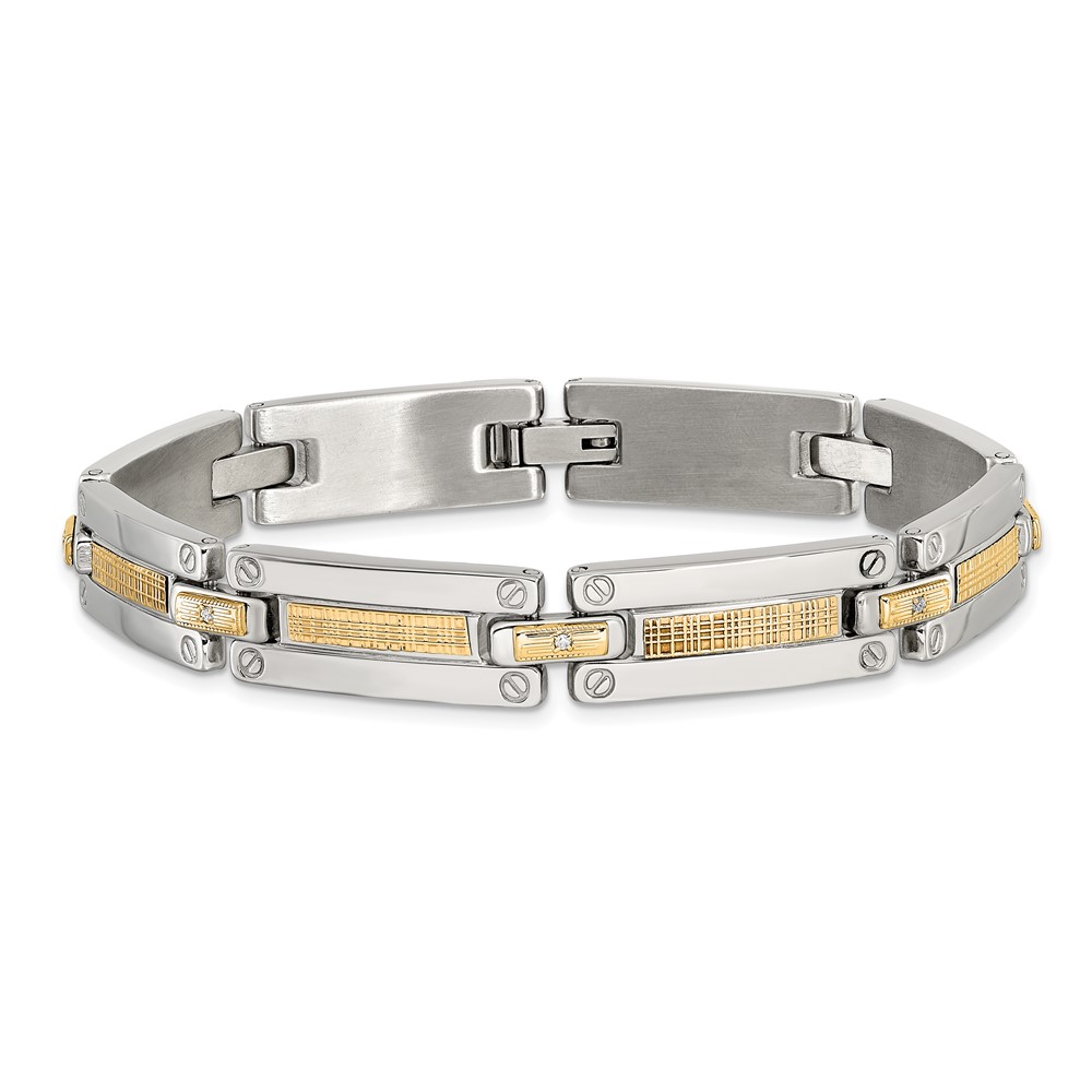 Chisel Stainless Steel Polished with 14K Accent Basket Weave and 1/15ct. Diamond 8.5 inch Bracelet