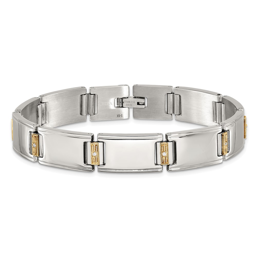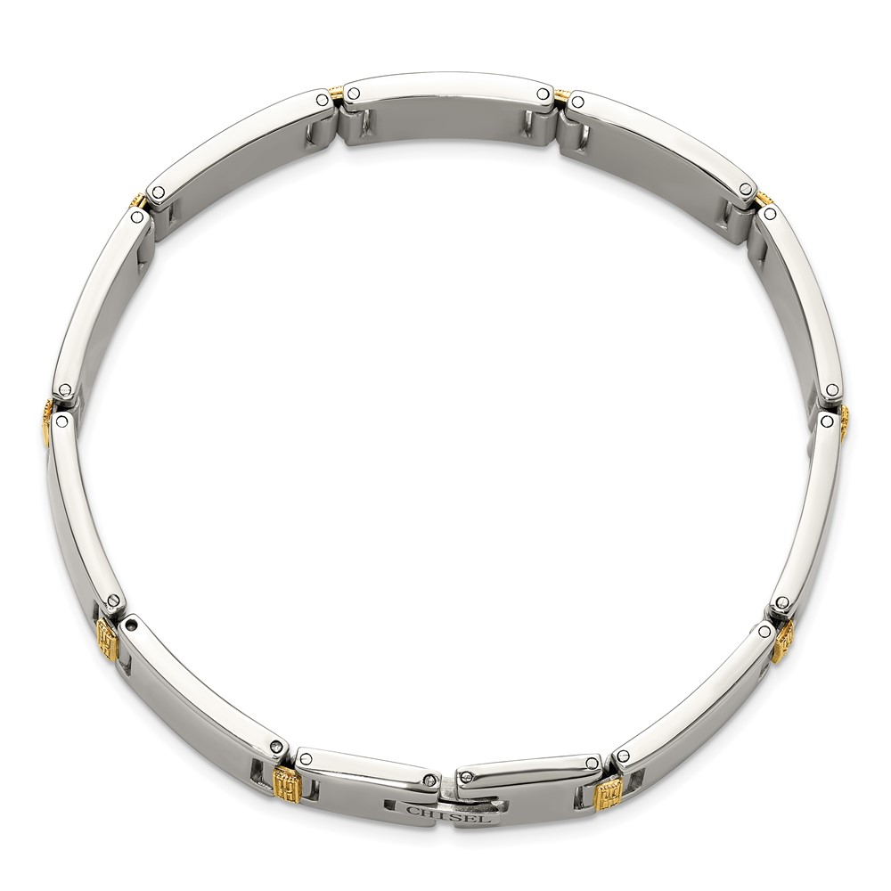 Chisel Stainless Steel Polished with 14K Gold Accent and 1/10ct. Diamond 8.5 inch Link Bracelet
