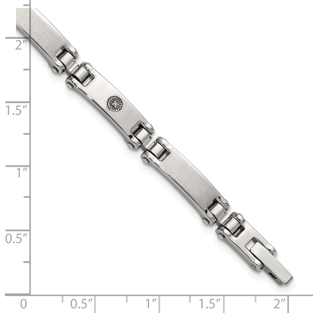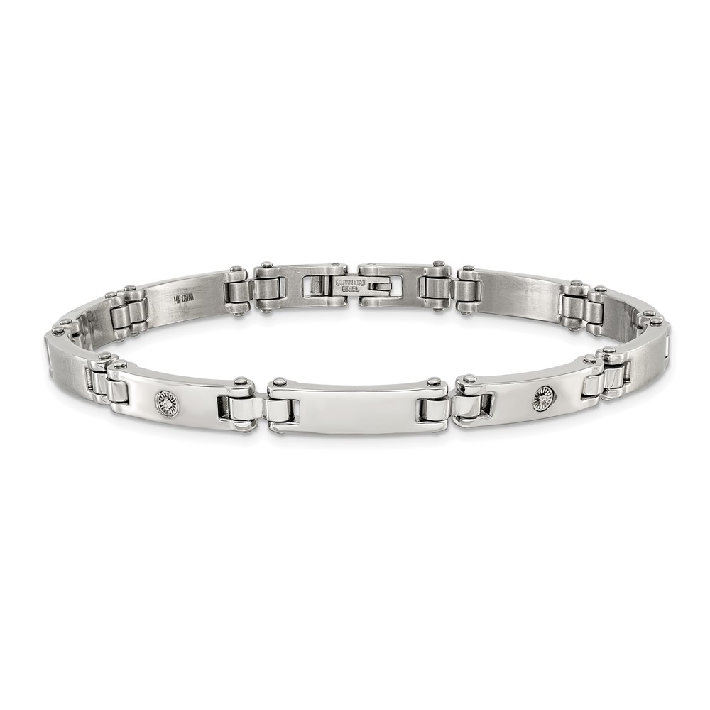 Chisel Stainless Steel Brushed and Polished with 14K White Gold Accent and .02ct Diamond 8.5 inch Bracelet