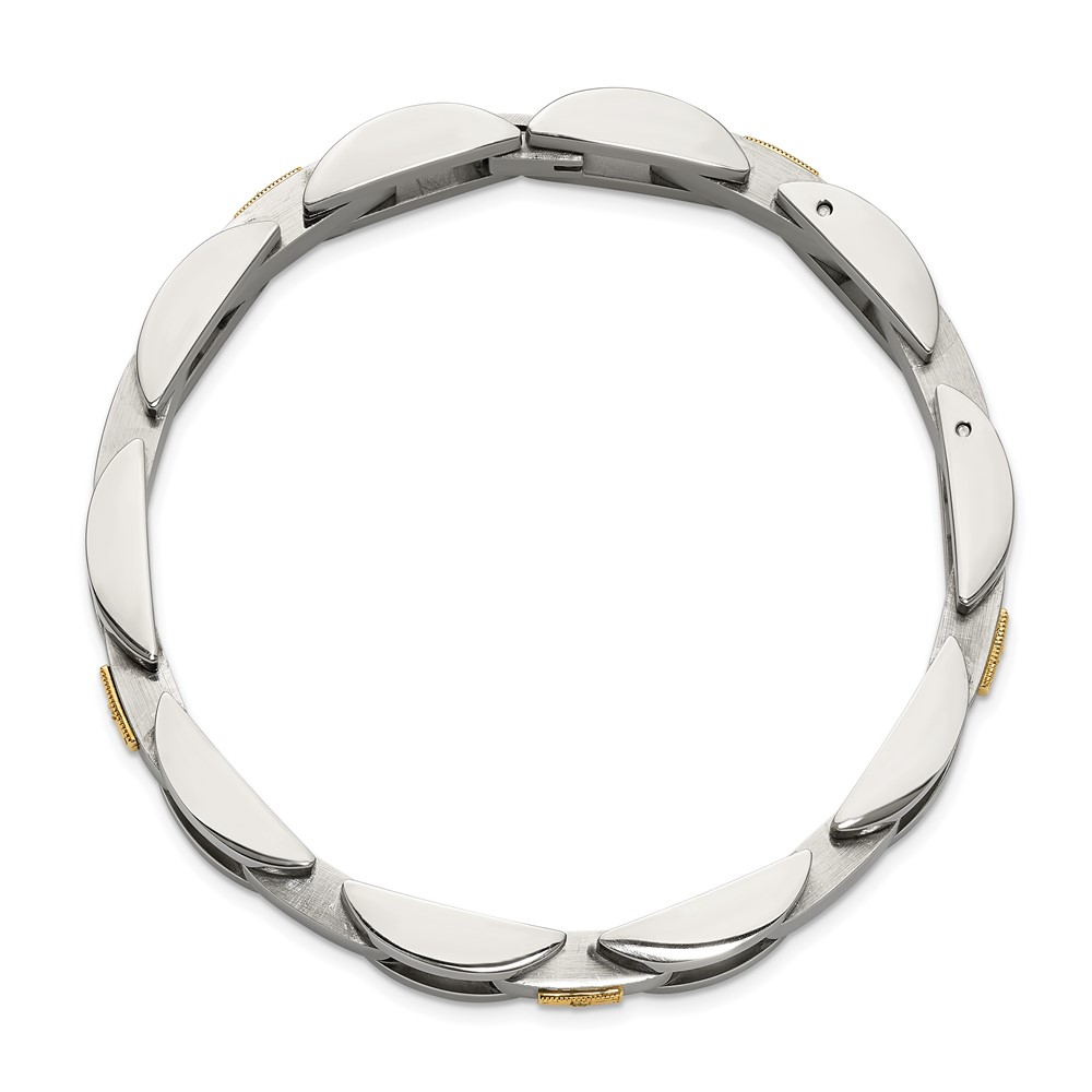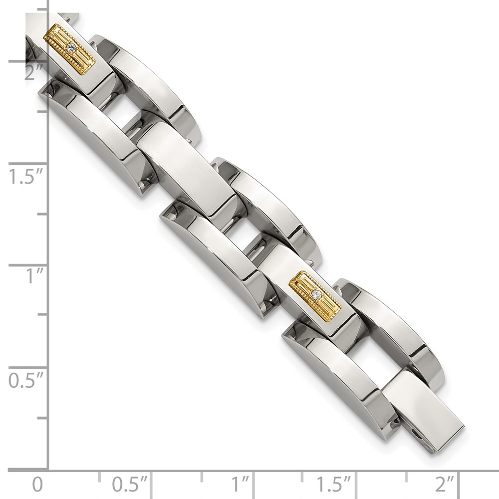 Chisel Stainless Steel Polished with 14K Gold Accent and 1/20ct. Diamond 8.25 inch Link Bracelet