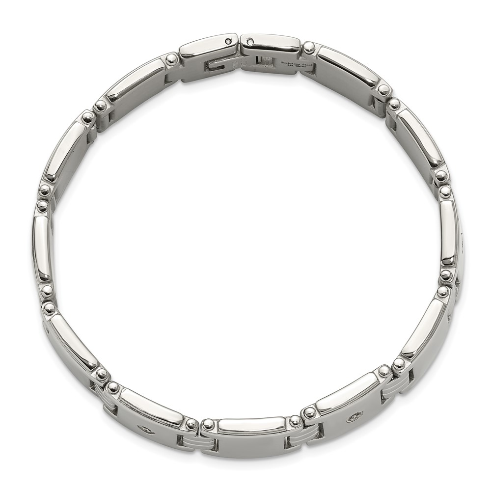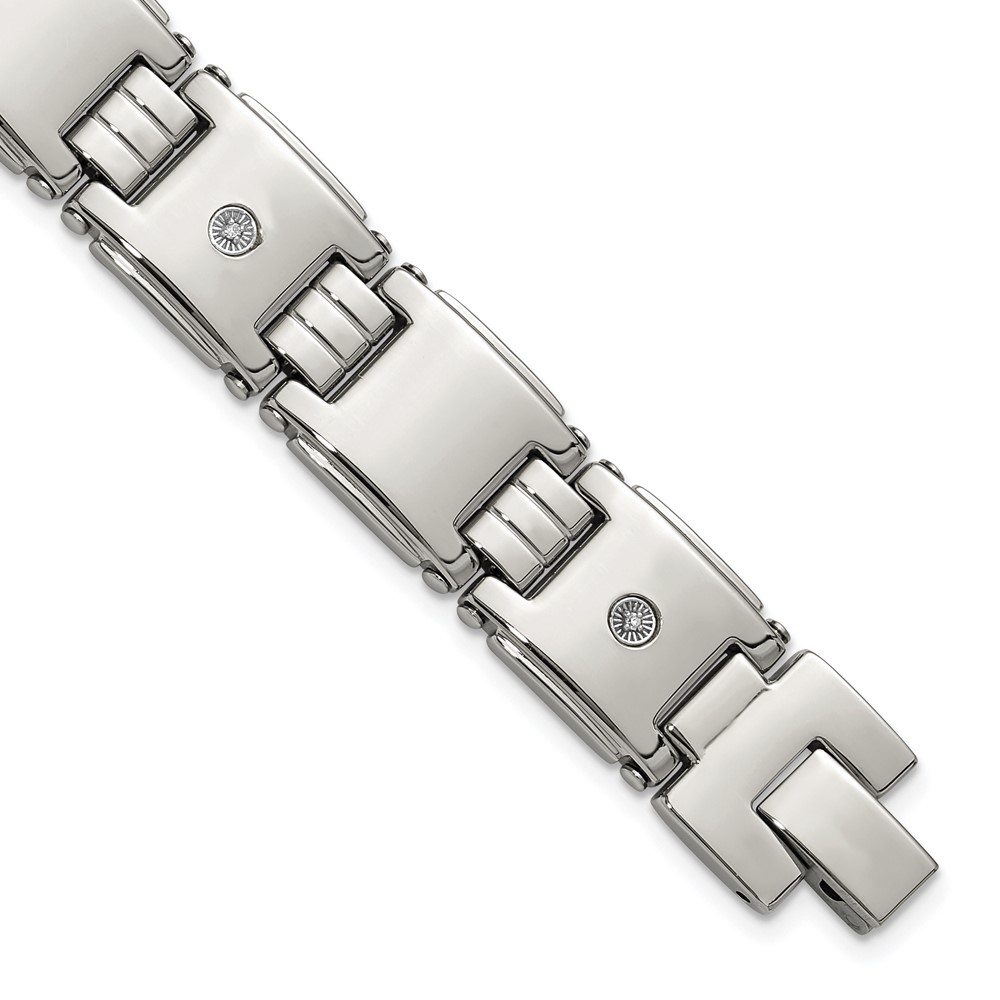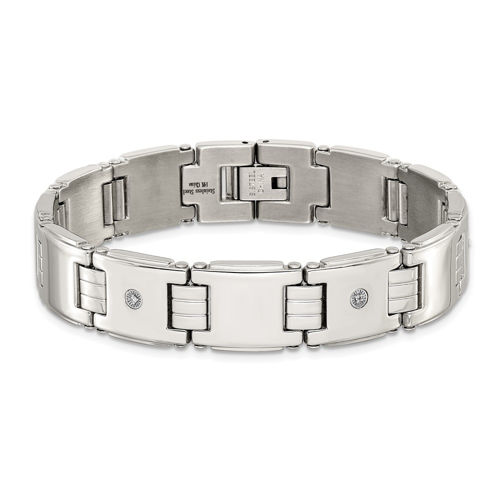 Chisel Stainless Steel Polished with 14K White Accent and .03ct Diamond 8 inch Link Bracelet