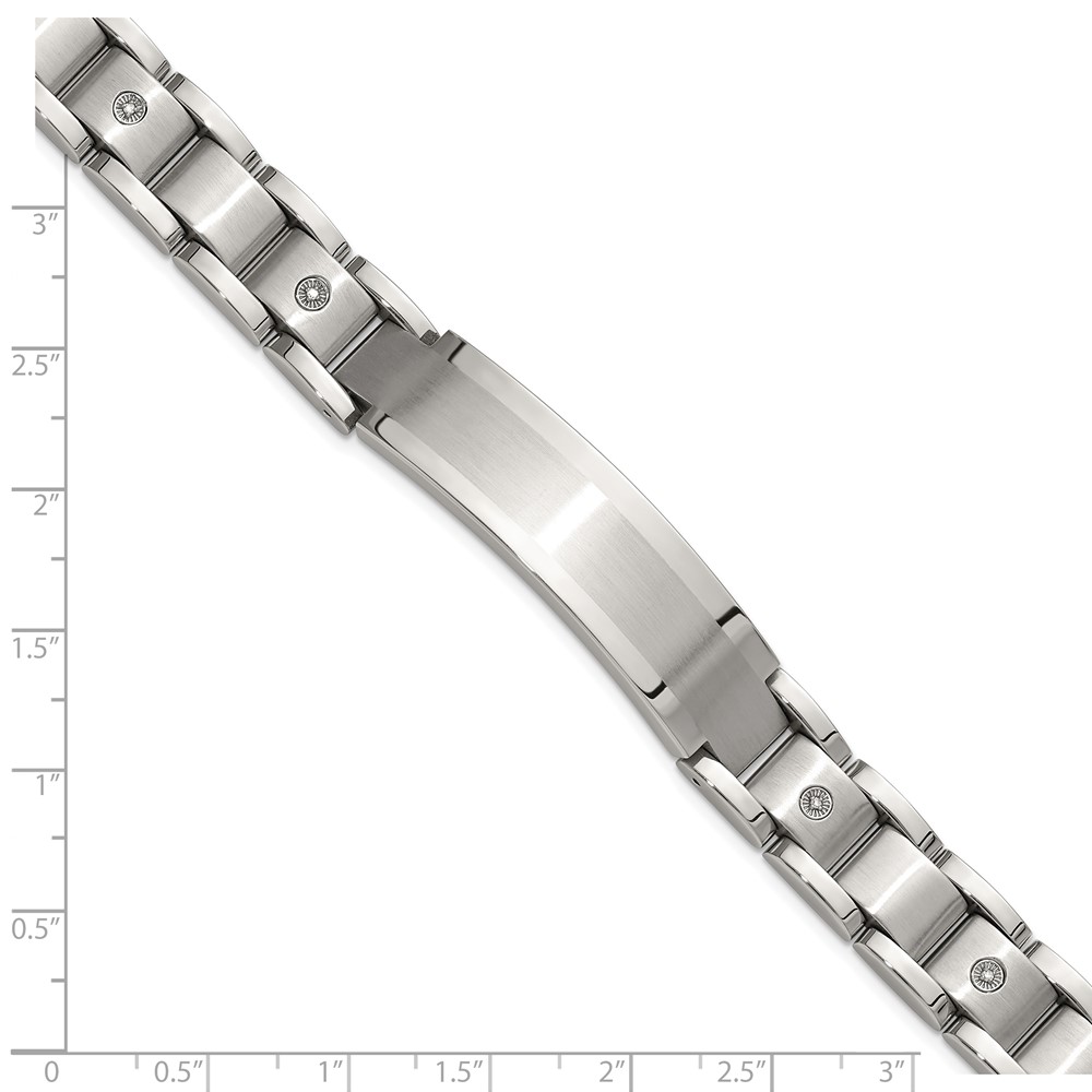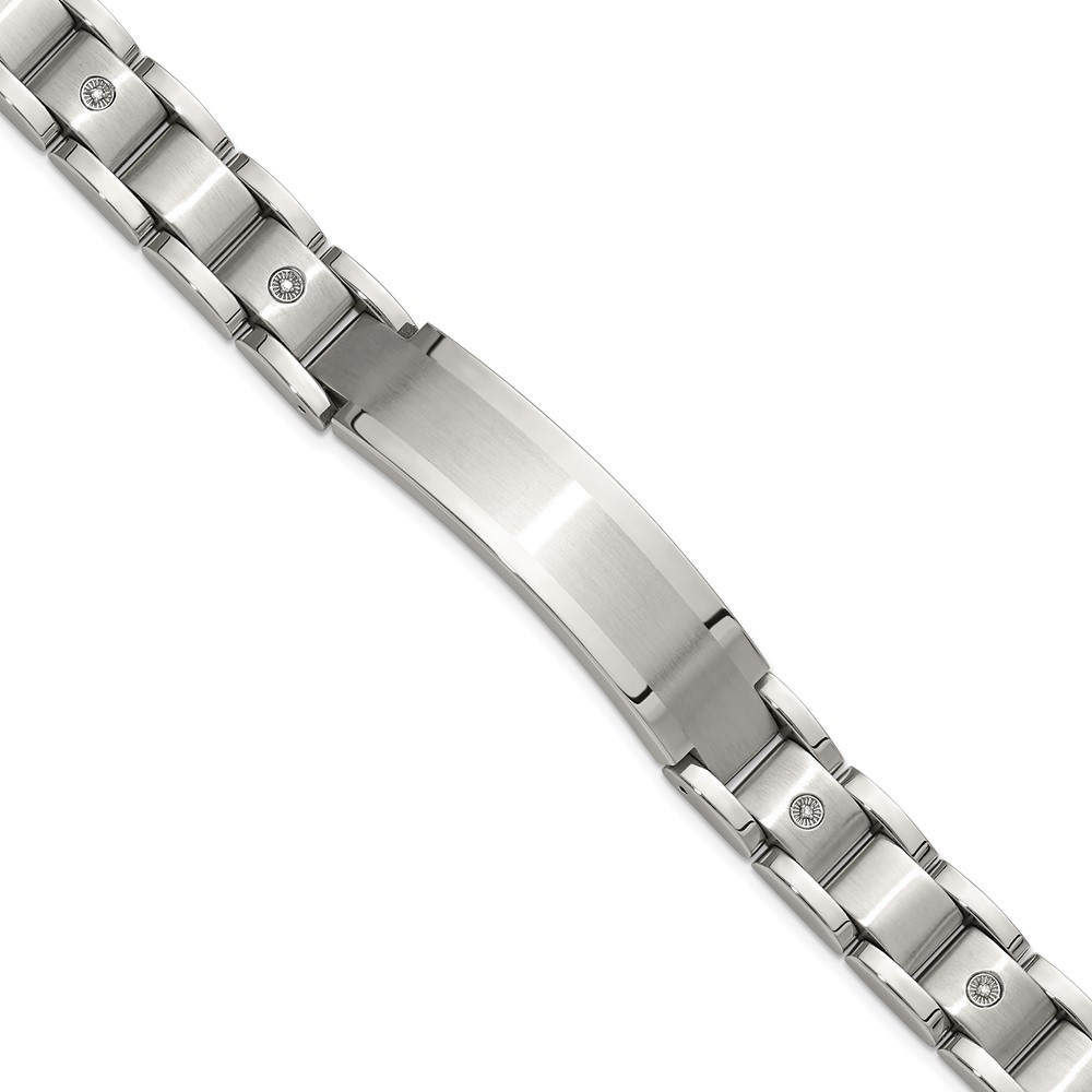 Chisel Stainless Steel Brushed and Polished with 14K White Gold Accent and 1/20ct. Diamond 8.5 inch Bracelet