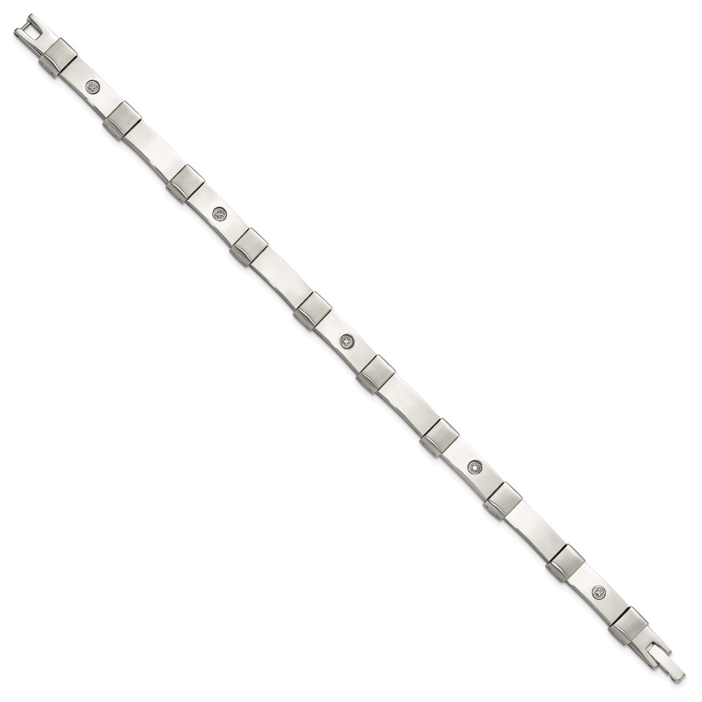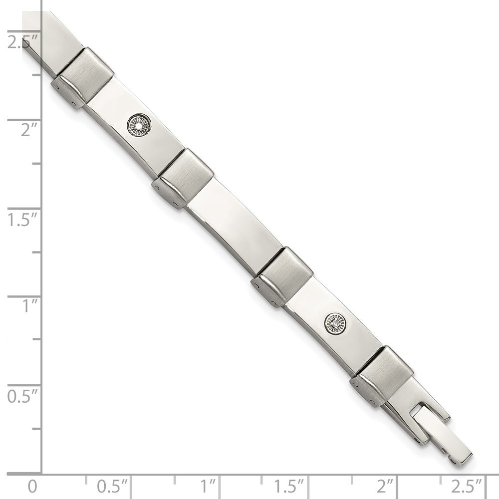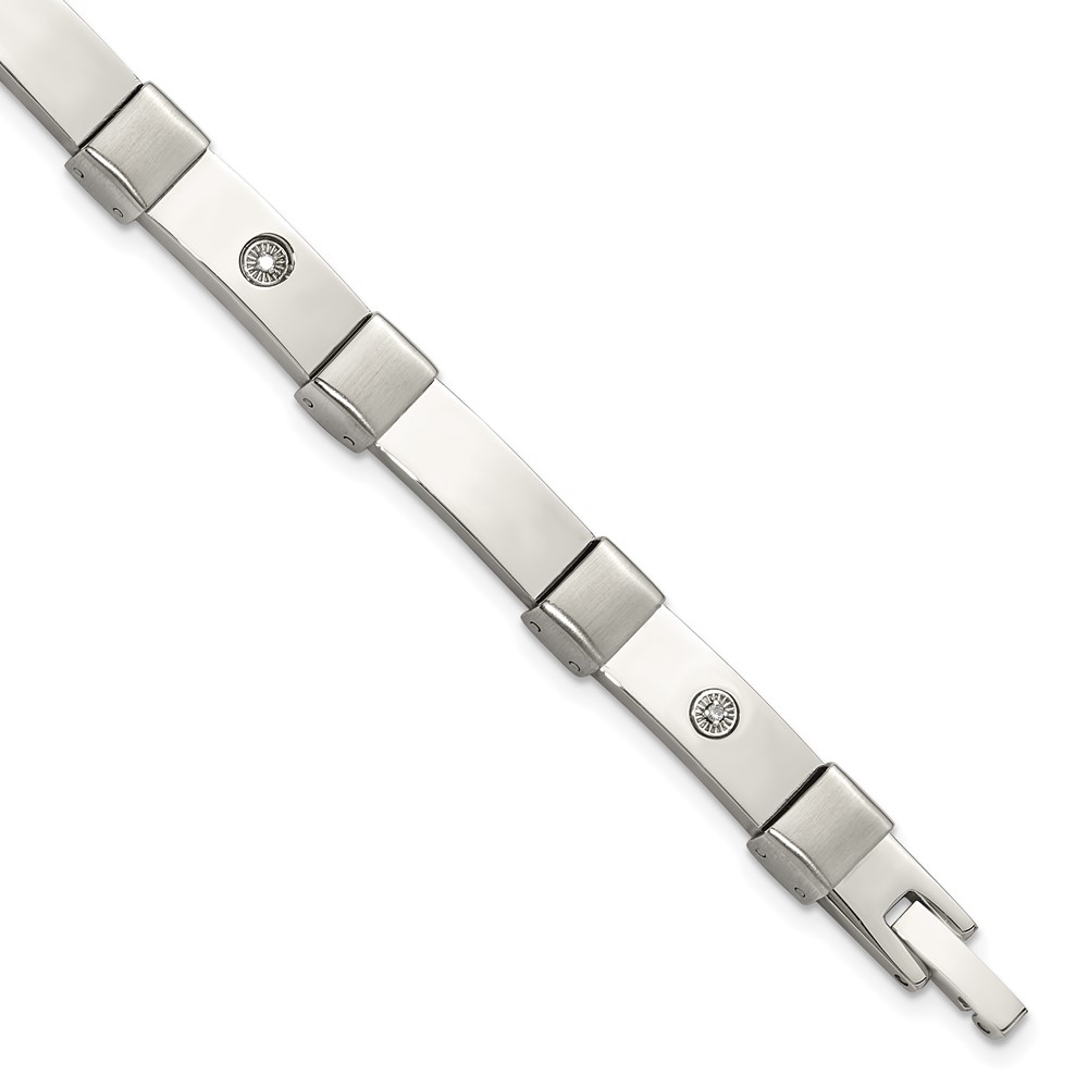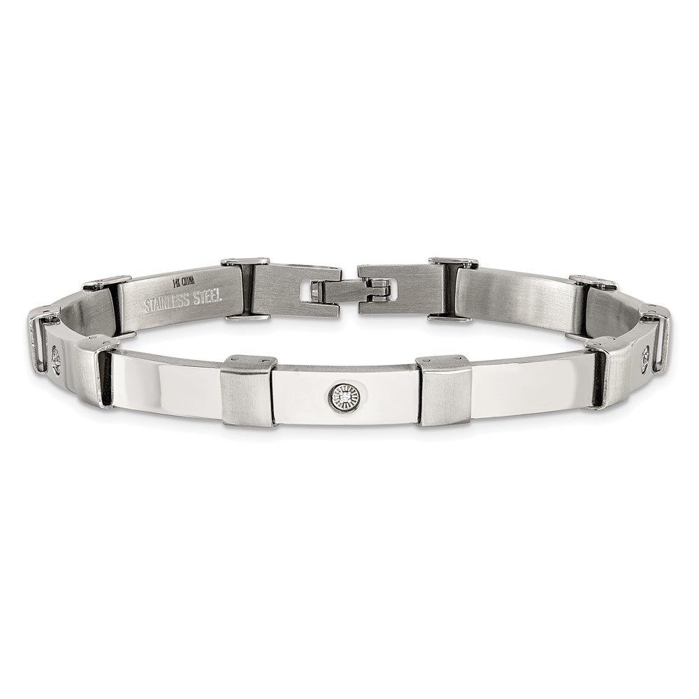 Chisel Stainless Steel Brushed and Polished with 14K White Gold Accent and .03ct Diamond 8.25 inch Bracelet