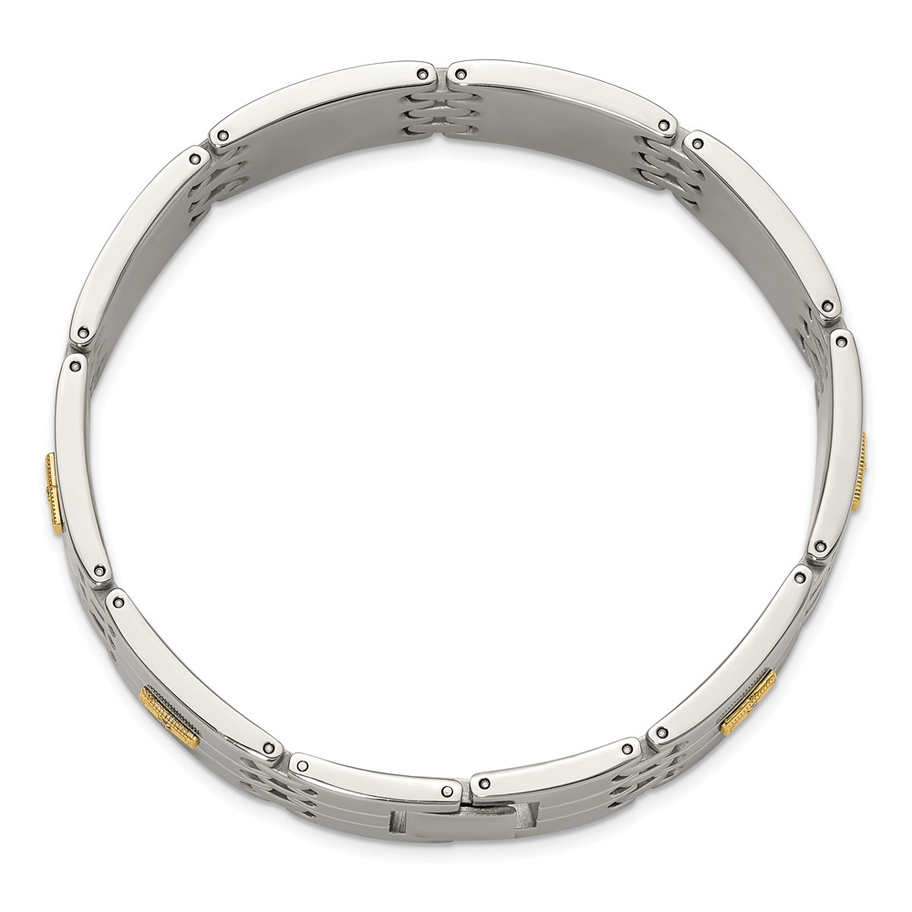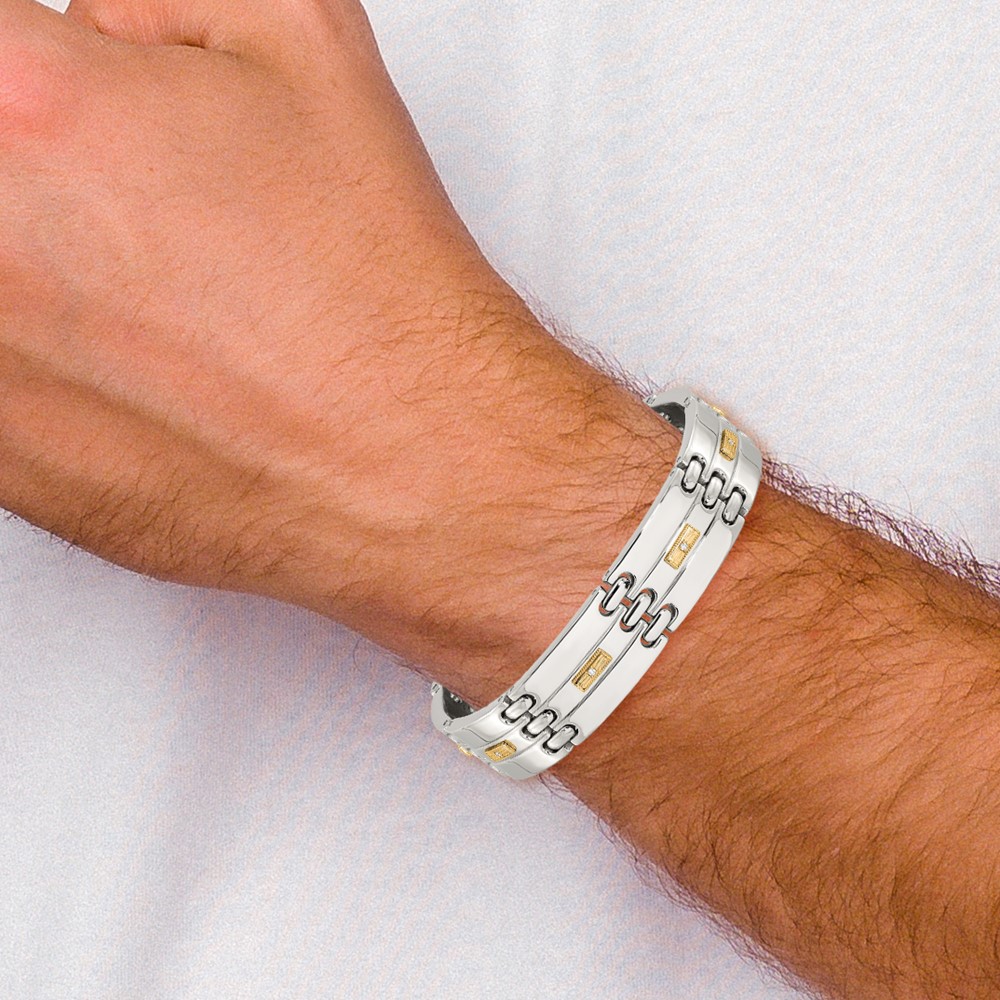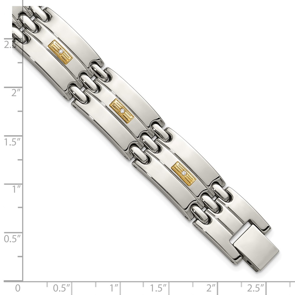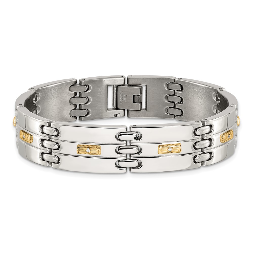 Chisel Stainless Steel Polished with 14K Gold Accent and 1/15ct. Diamond 8.5 inch Link Bracelet
