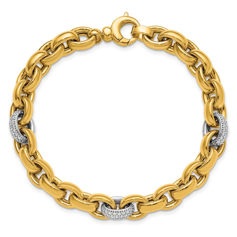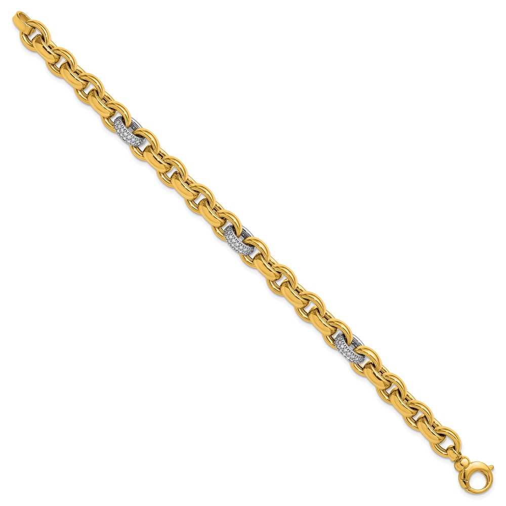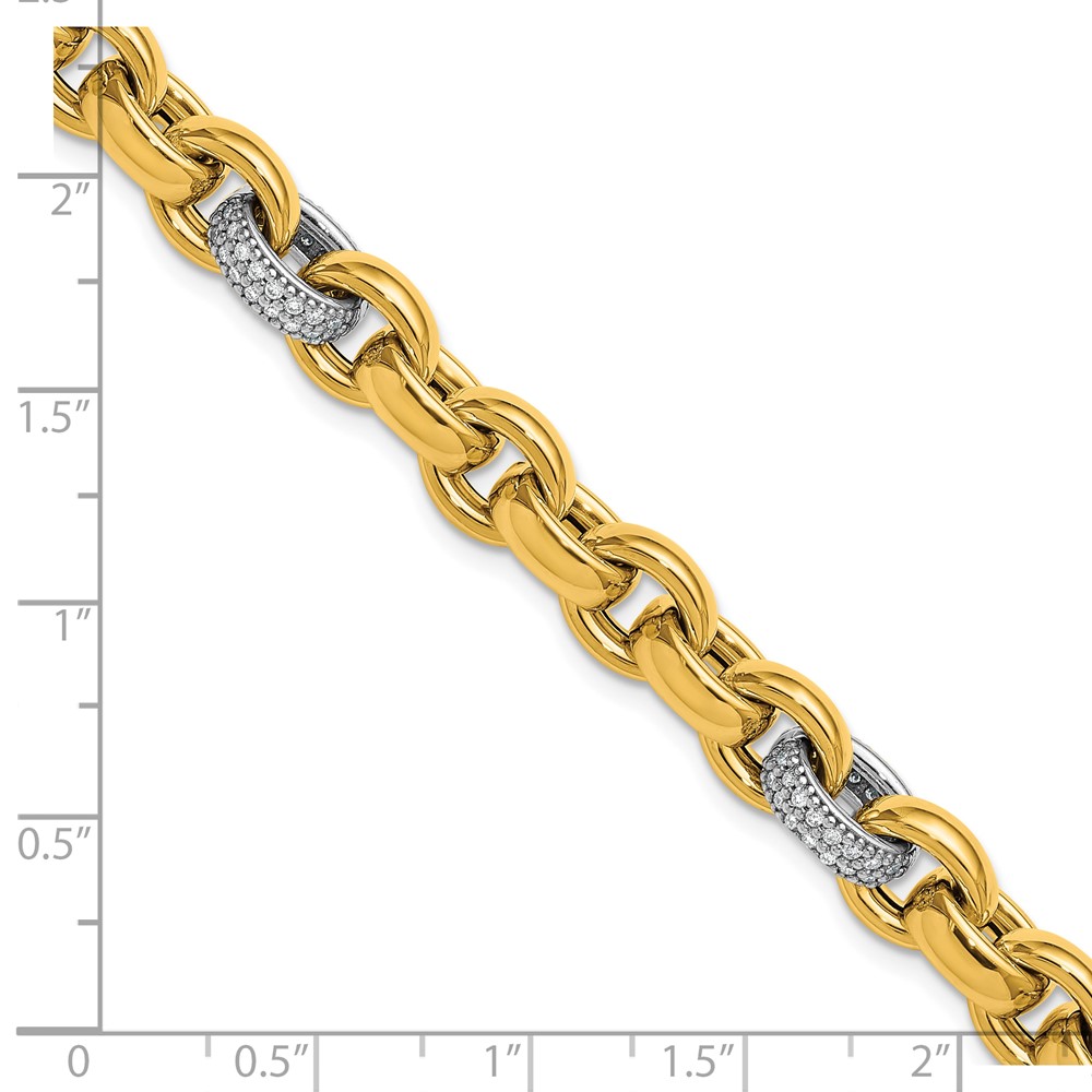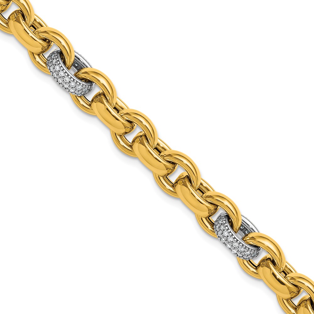 Herco 14K Two-tone Polished 3/4ct. Diamond 8.5mm Cable Chain 7.5 Inch Bracelet
