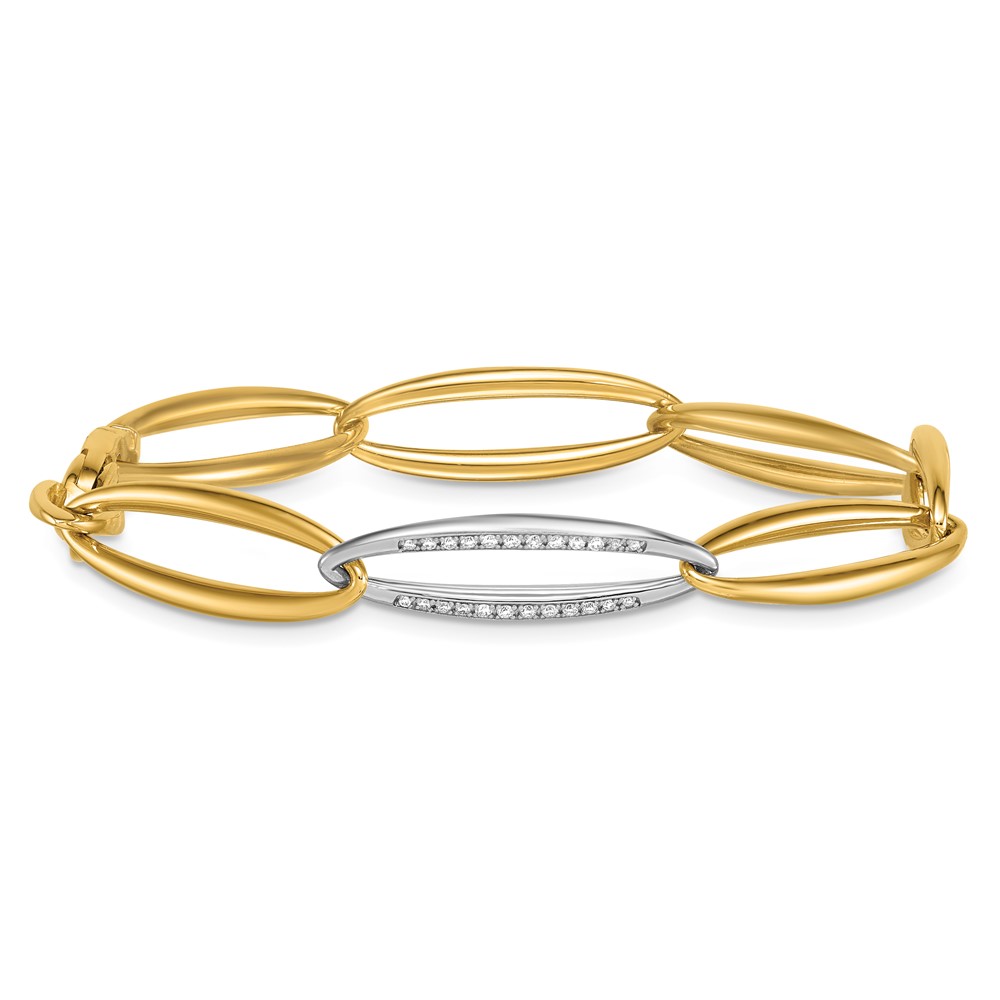 Herco 14K Two-tone Polished Diamond Oval Link 8 Inch Bracelet