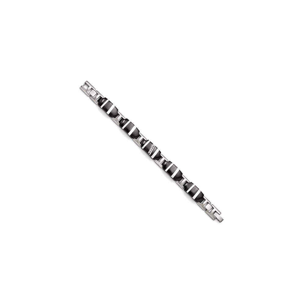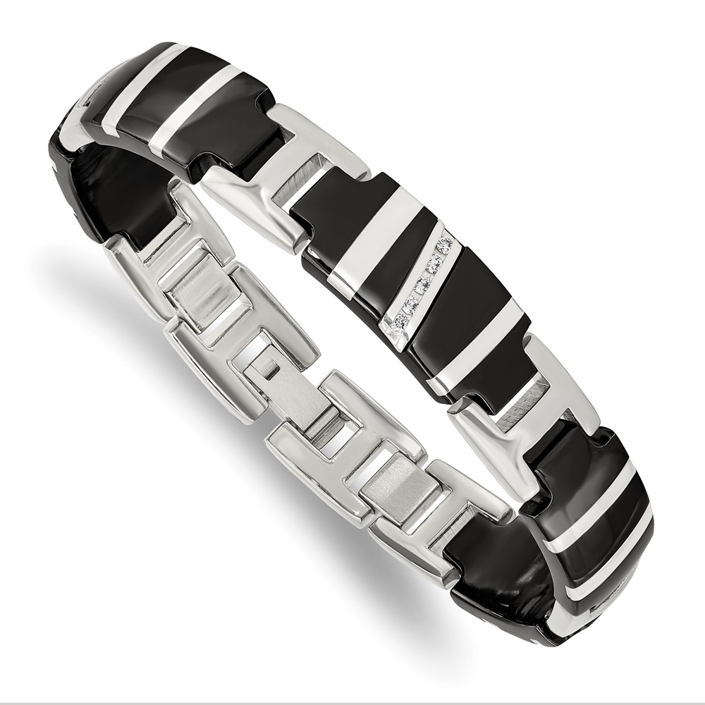 Edward Mirell Black Ti & Sterling Silver Polished .10ctw Dia Bracelet