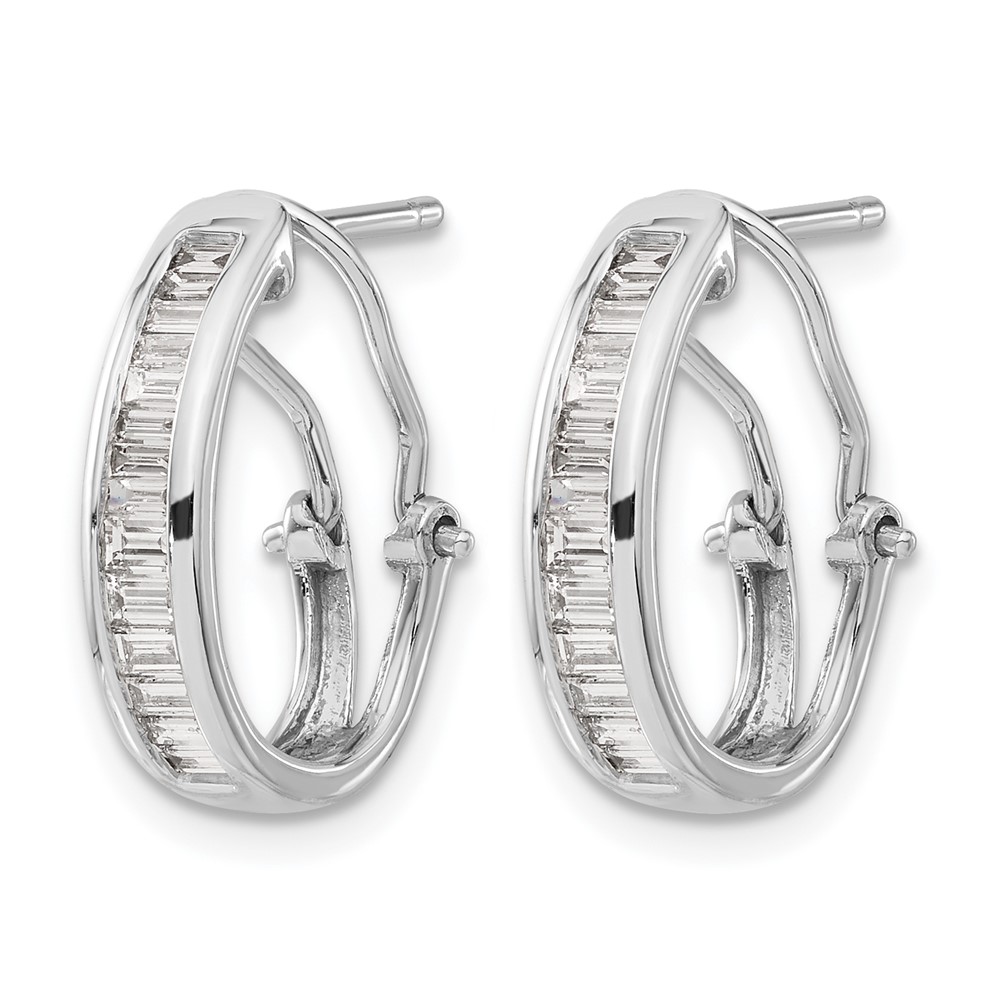 14k White Gold 1/2 carat Baguette Diamond Channel-set Omega Back Hoop Earrings