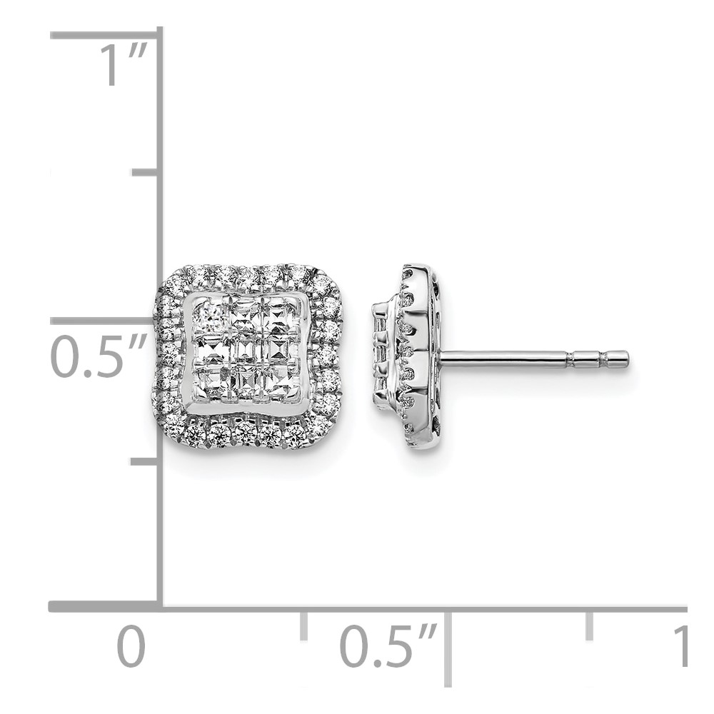 14k White Gold 1/2 carat Diamond Square Cluster Post Earrings
