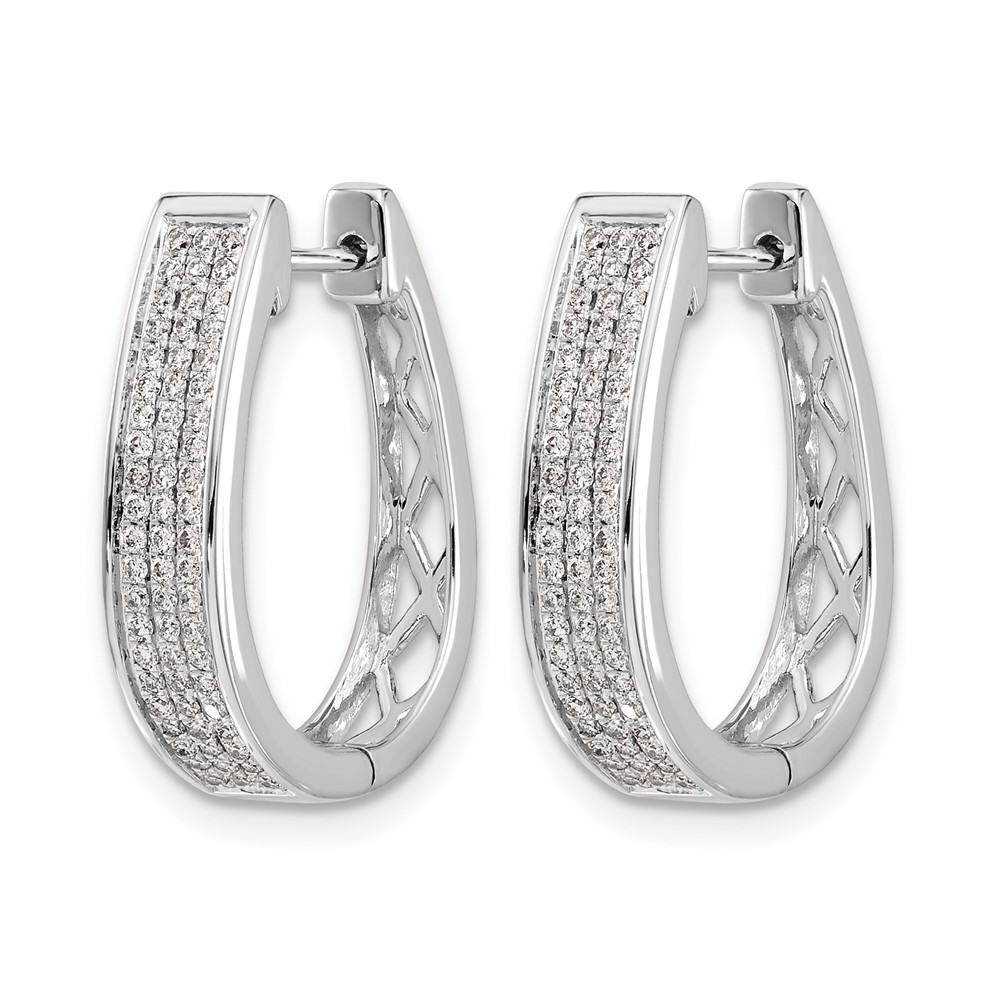 14k White Gold 3/8 carat Diamond Pave Large Hinged Oval Hoop Earrings