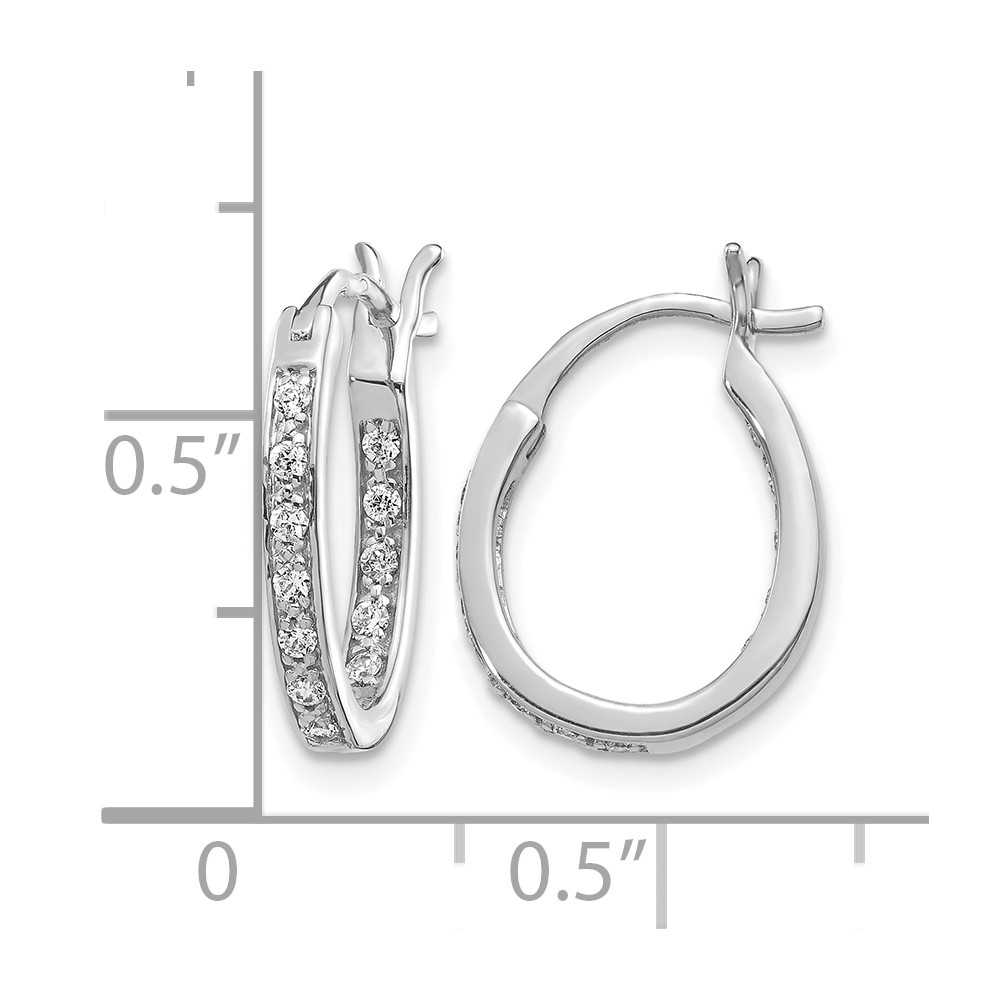 14k Satin/Polished 1/3 carat Diamond Oval with Chain Dangle Post Earrings