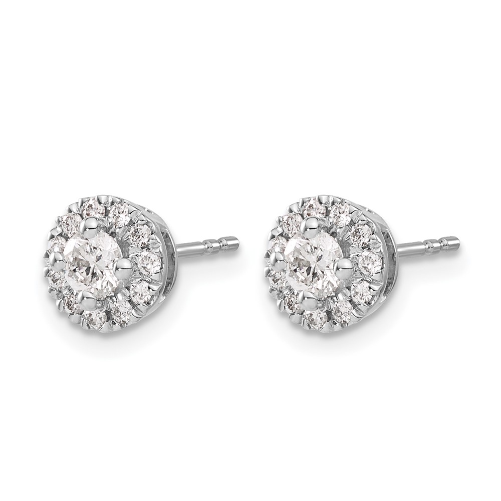 14k White Gold 5/8 carat Diamond Halo Cluster Post Earrings