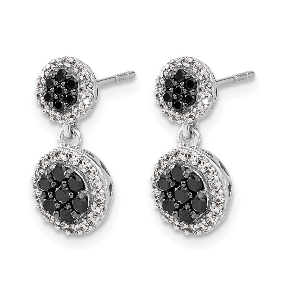 14k White Gold 3/4 carat Black/White Diamond Cluster Dangle Post Earrings