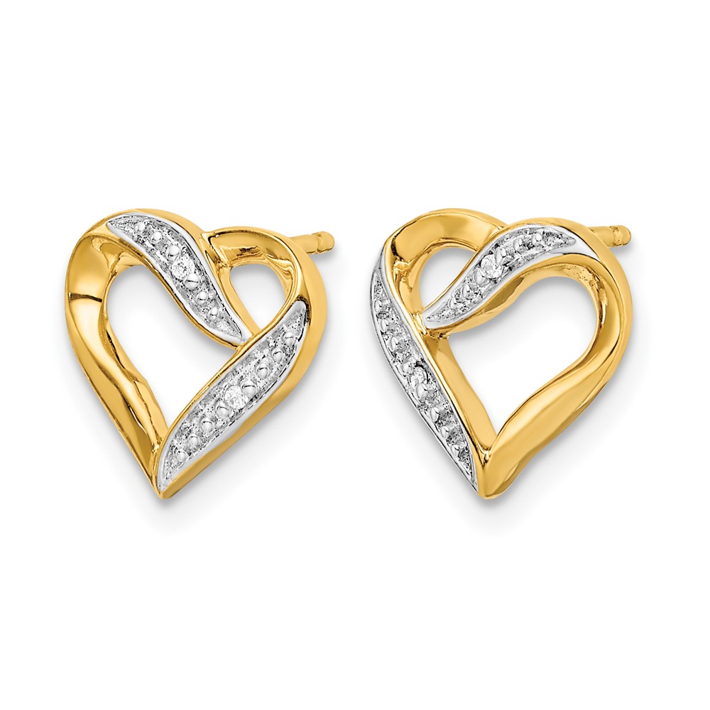 14k and White Rhodium Diamond Heart Post Earrings