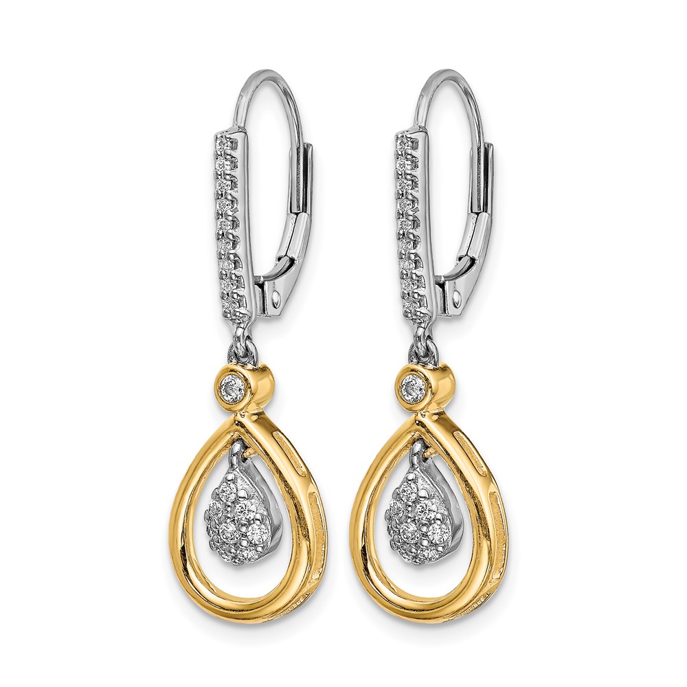 14k Two-tone Oval Cluster 1/4 carat Diamond Leverback Earrings