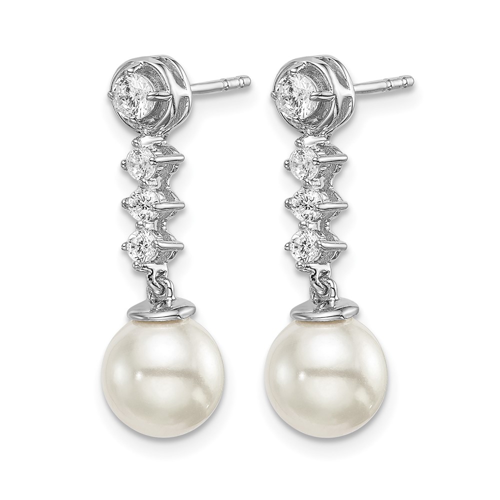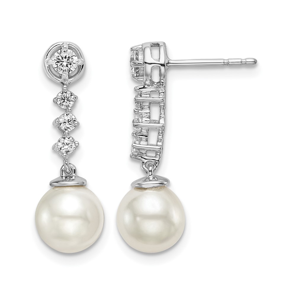 14k White Gold 6-7mm White Round Freshwater Cultured Pearl and .34 carat Diamond Dangle Post Earrings