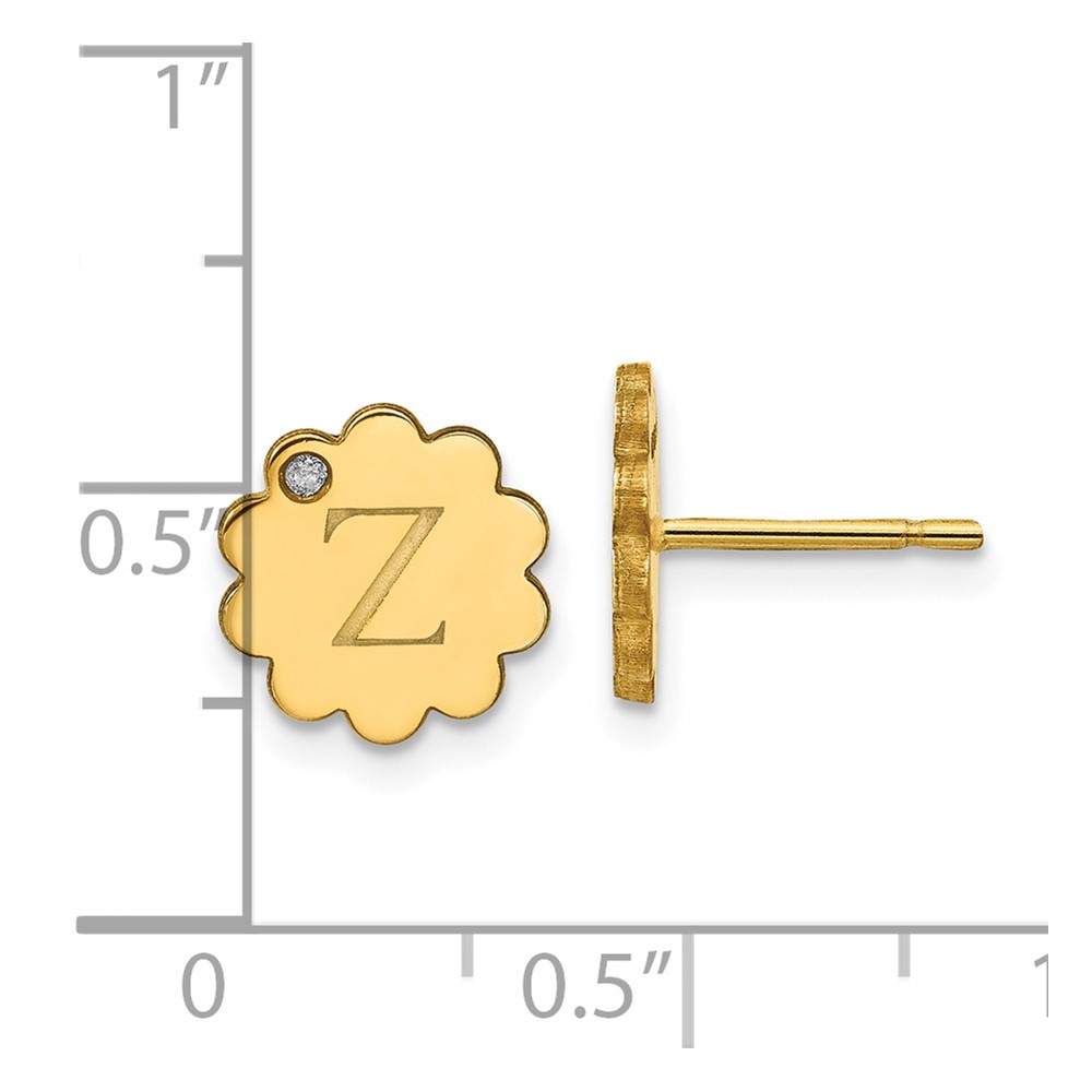 Initial Flower with Diamond Post Earrings