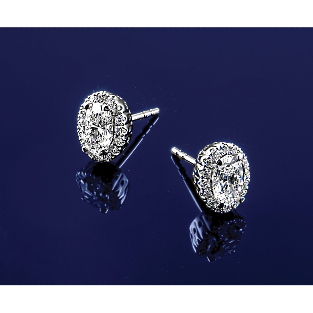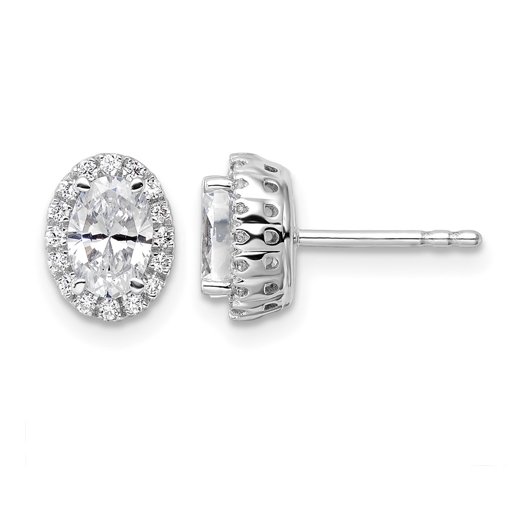 14k White Gold 1 1/5 carat Lab Grown Diamond VS/SI+ G+ Oval Halo Stud Earrings