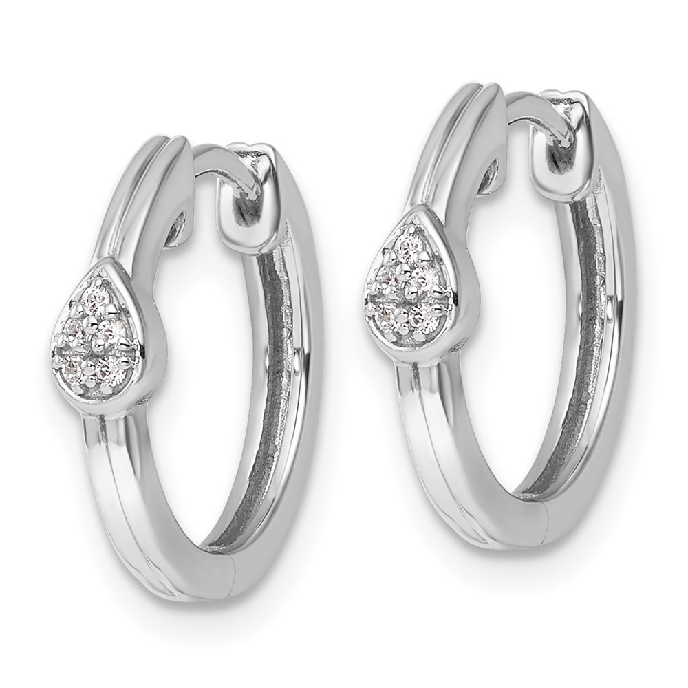 White Ice Sterling Silver Rhodium-plated Diamond Teardrop Hinged Hoop Earrings