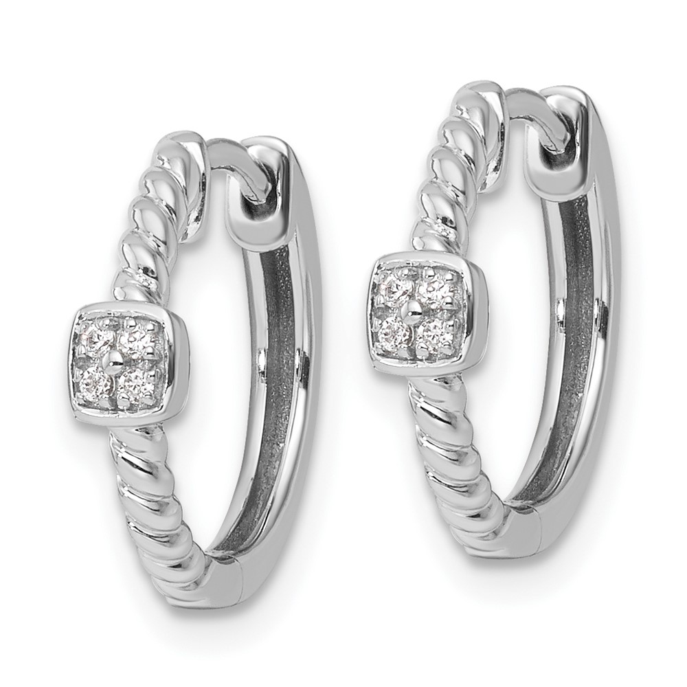 White Ice Sterling Silver Rhodium-plated Diamond Square Hinged Hoop Earrings
