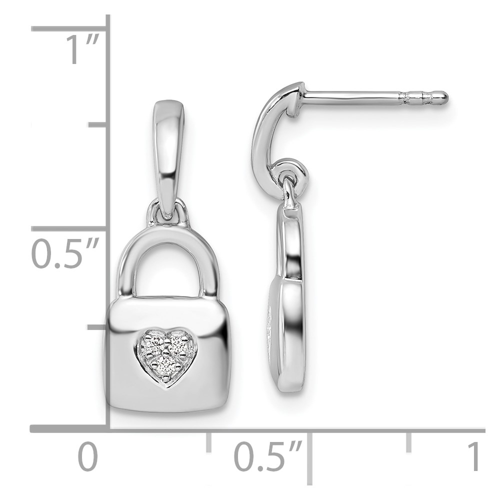 White Ice Sterling Silver Rhodium-plated Diamond Heart Lock Dangle Post Earrings