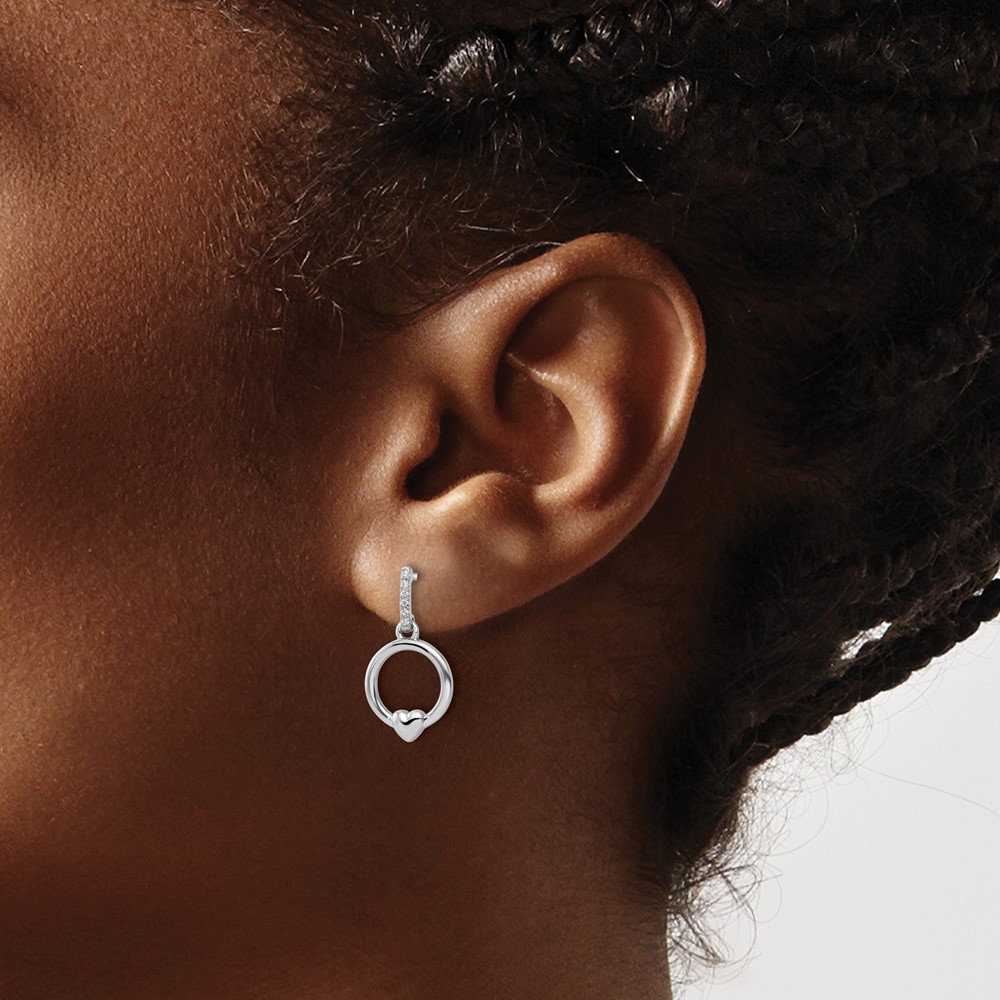 White Ice Sterling Silver Rhodium-plated Diamond Heart Dangle Post Earrings