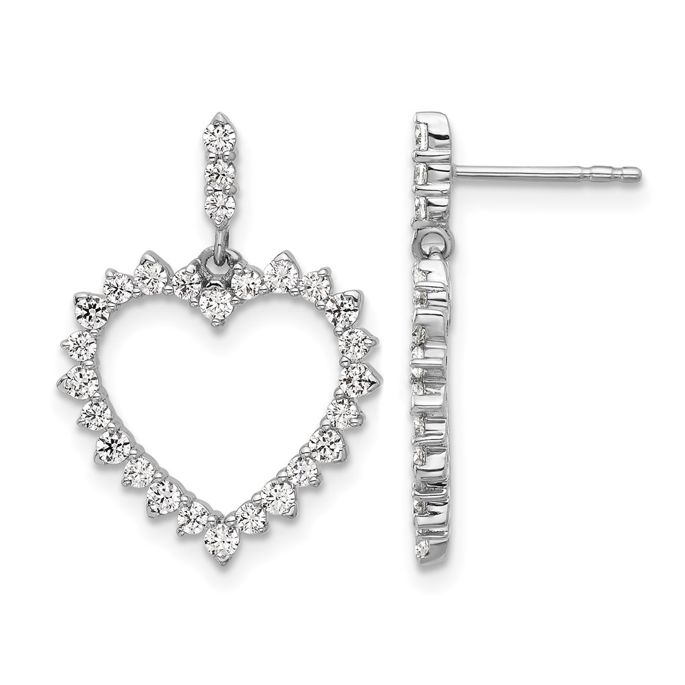 14k White Gold 1 carat Lab Grown Diamond VS/SI+ G+ Complete Dangle Heart Post Earrings