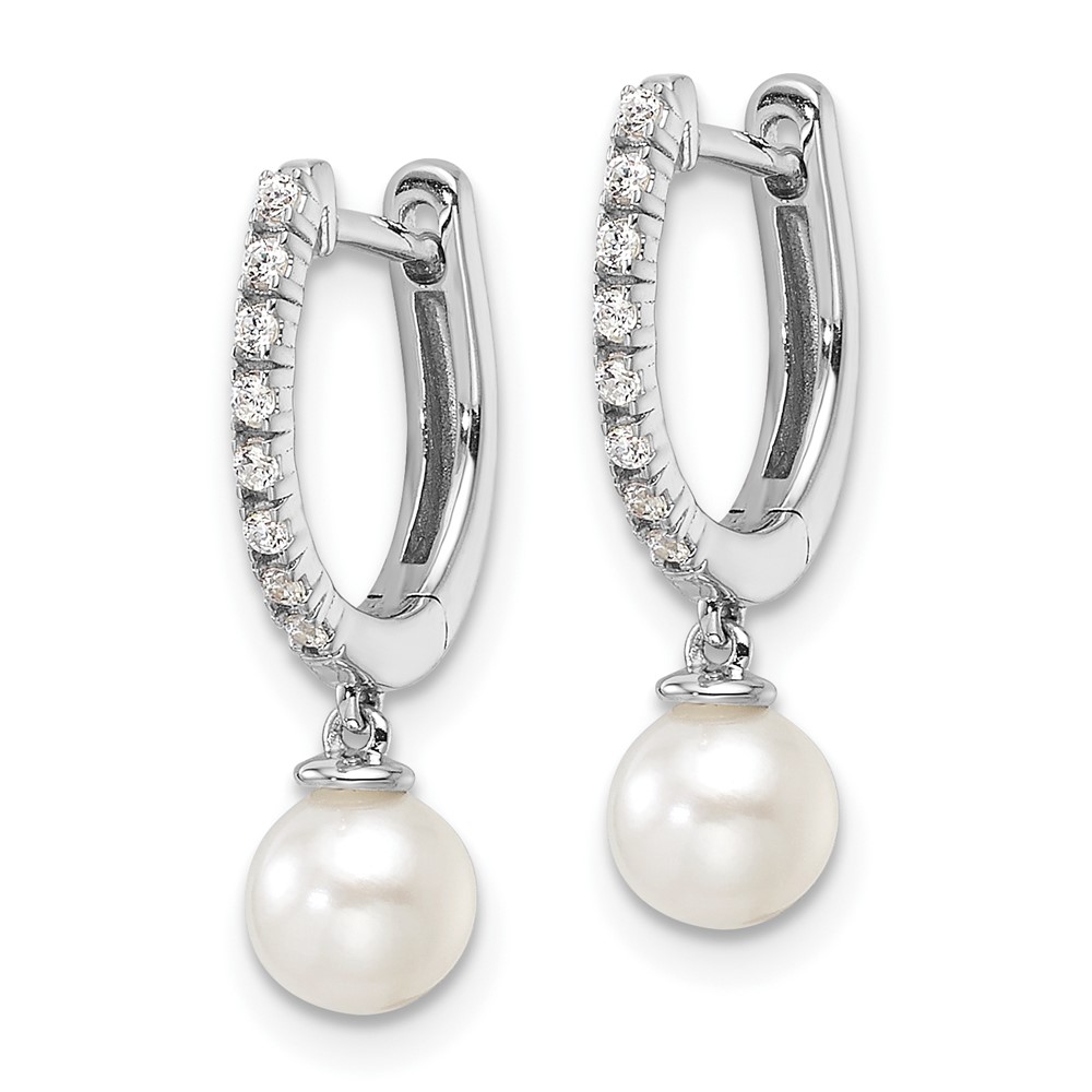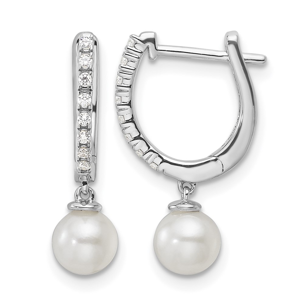 14k White Gold 1/10 carat Lab Grown Diamond VS/SI+ G+ and 5.50 mm Round Freshwater Cultured Pearl Complete Hinged Hoop Earrings