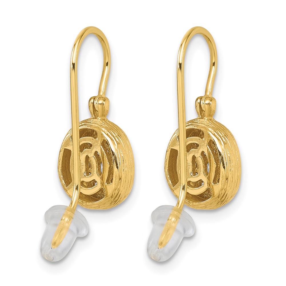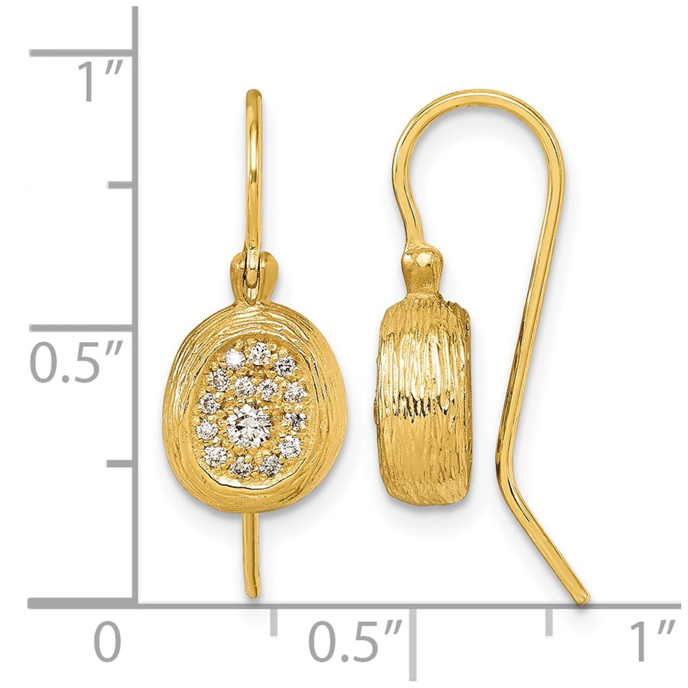 Herco 14K Polished and Textured Diamond Oval Shephard Hook Dangle Earrings