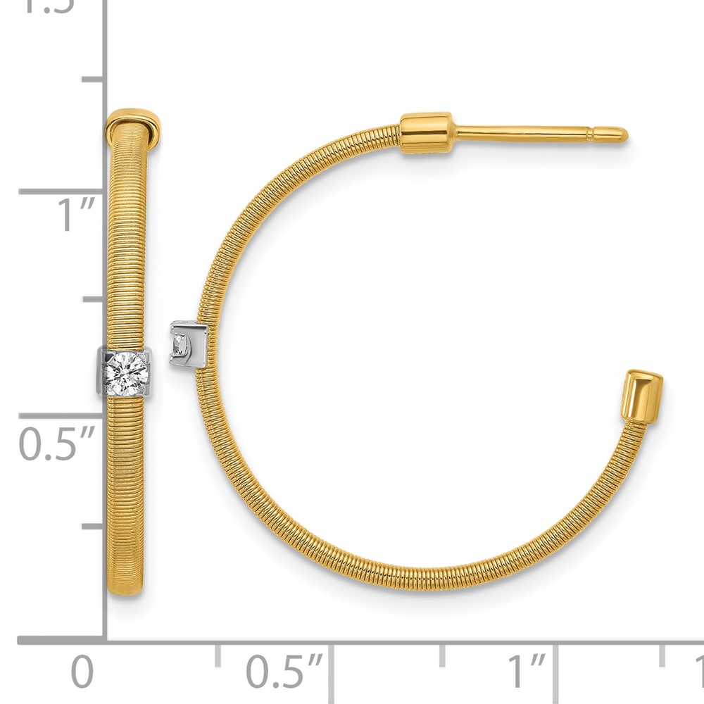Herco 18K Two-tone Polished and Textured Diamond C-Hoop Post Earrings