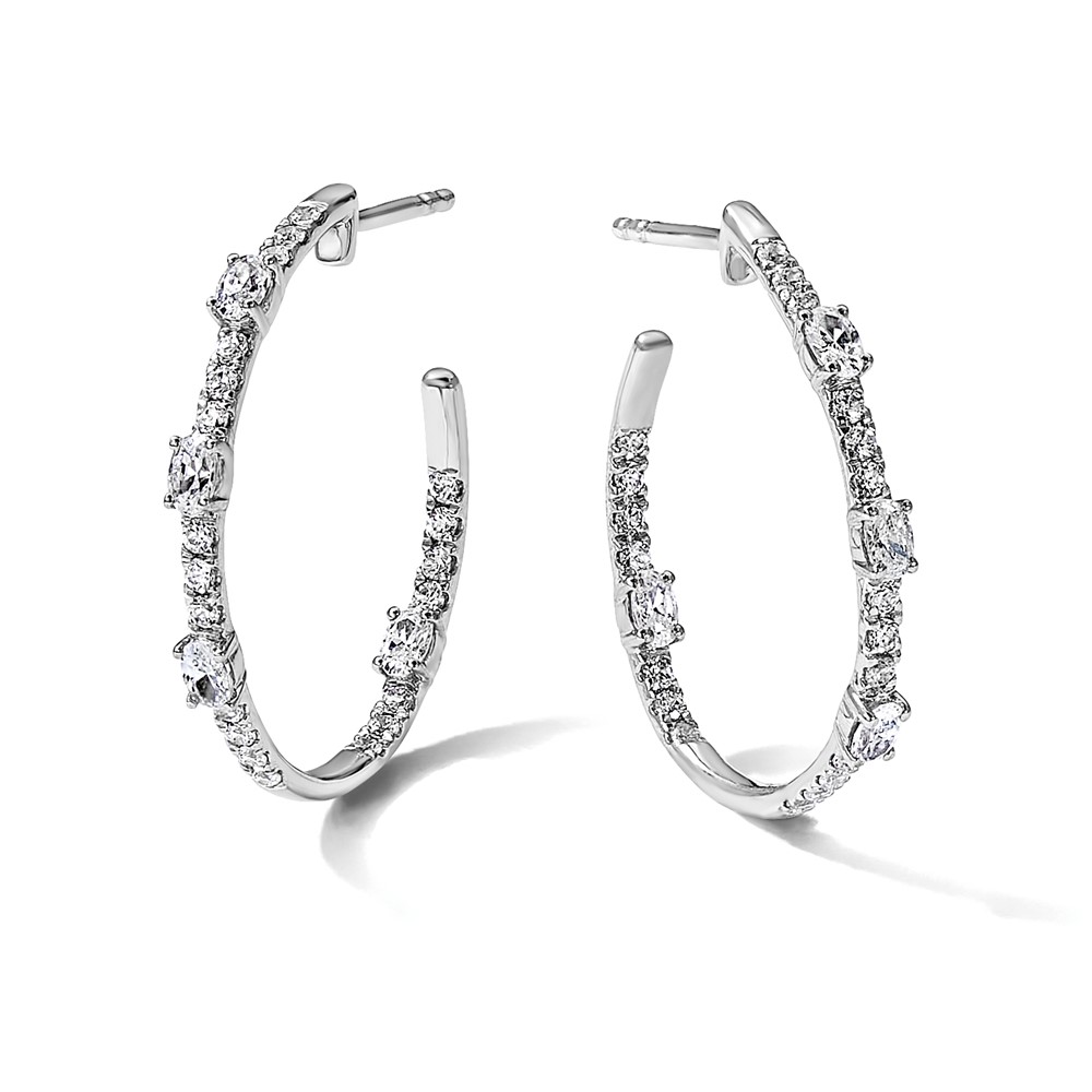 14K Certified 5x3 Oval Lab Grown VS DEF Diamond Inside/Outside Hoop Earring