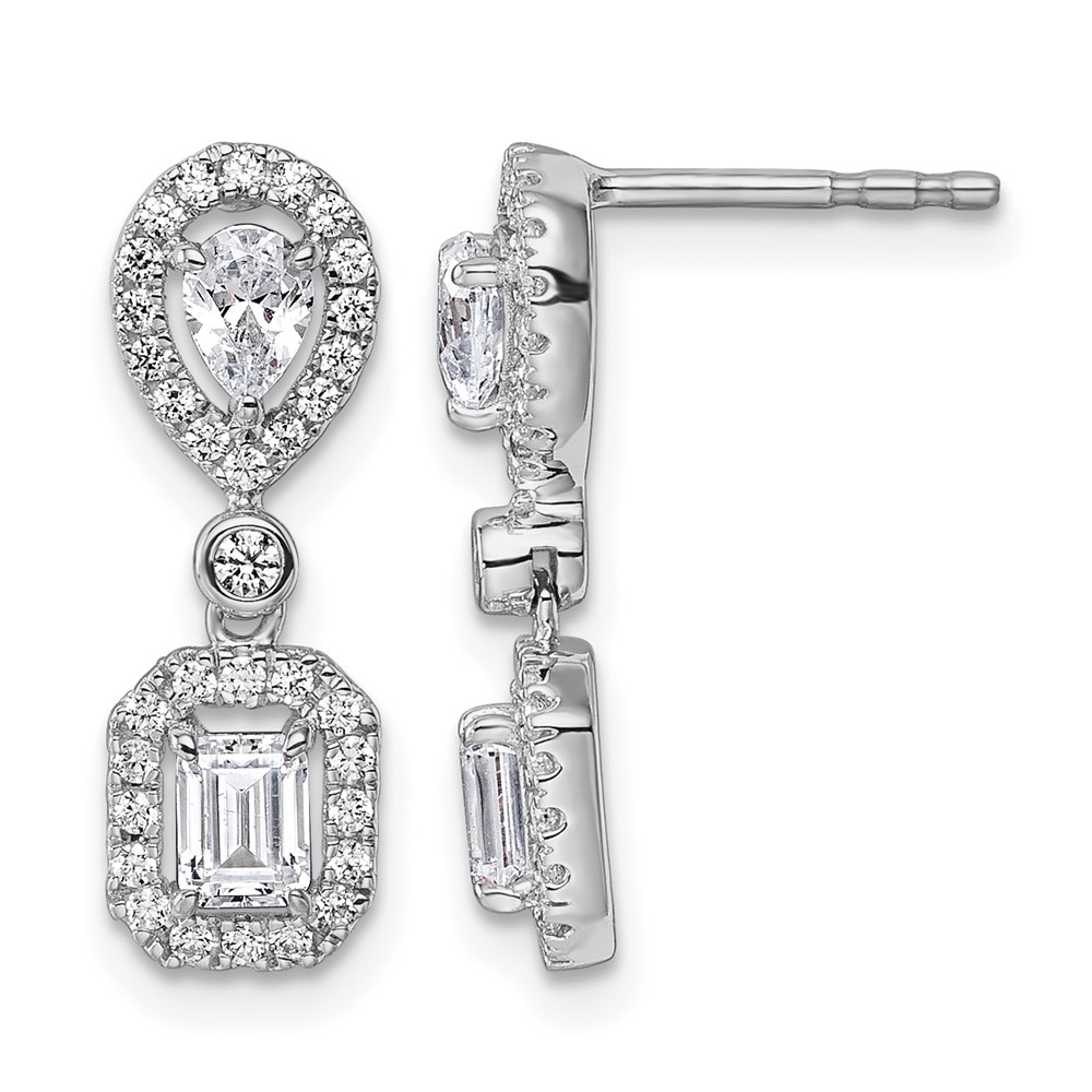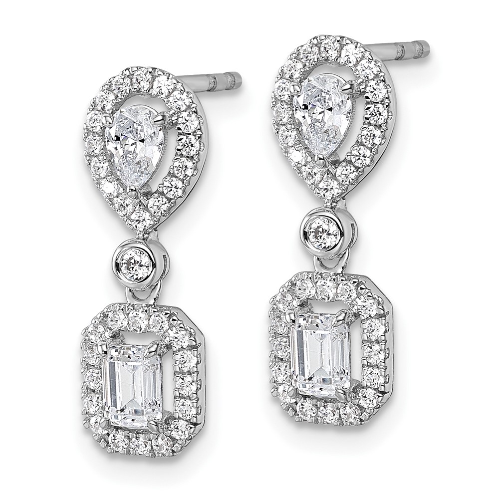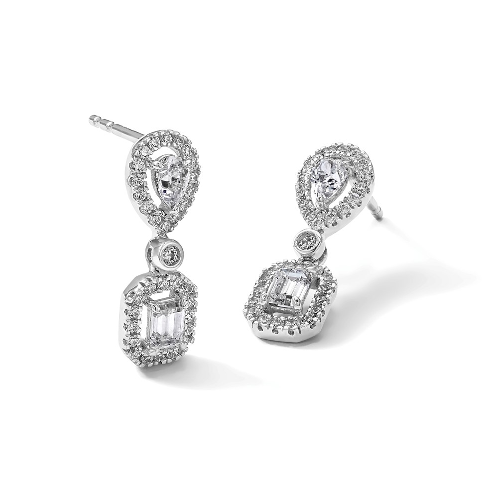 14k White Gold 1 carat Lab Grown Diamond VS/SI+ G+ Complete Two Stone Dangle Halo Post Earrings