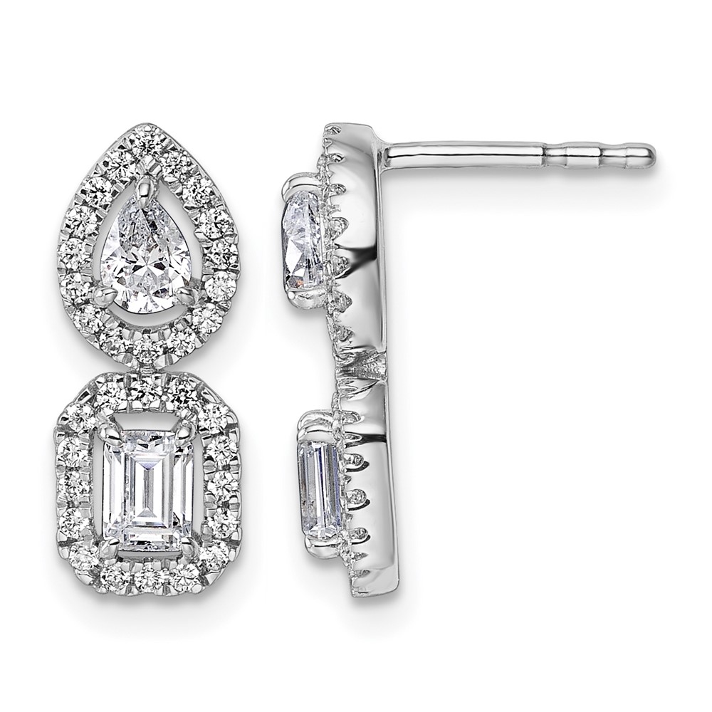 14k White Gold 7/8 carat Lab Grown Diamond VS/SI+ G+ Complete Two Stone Dangle Halo Post Earrings