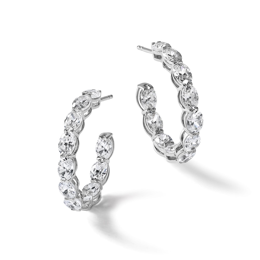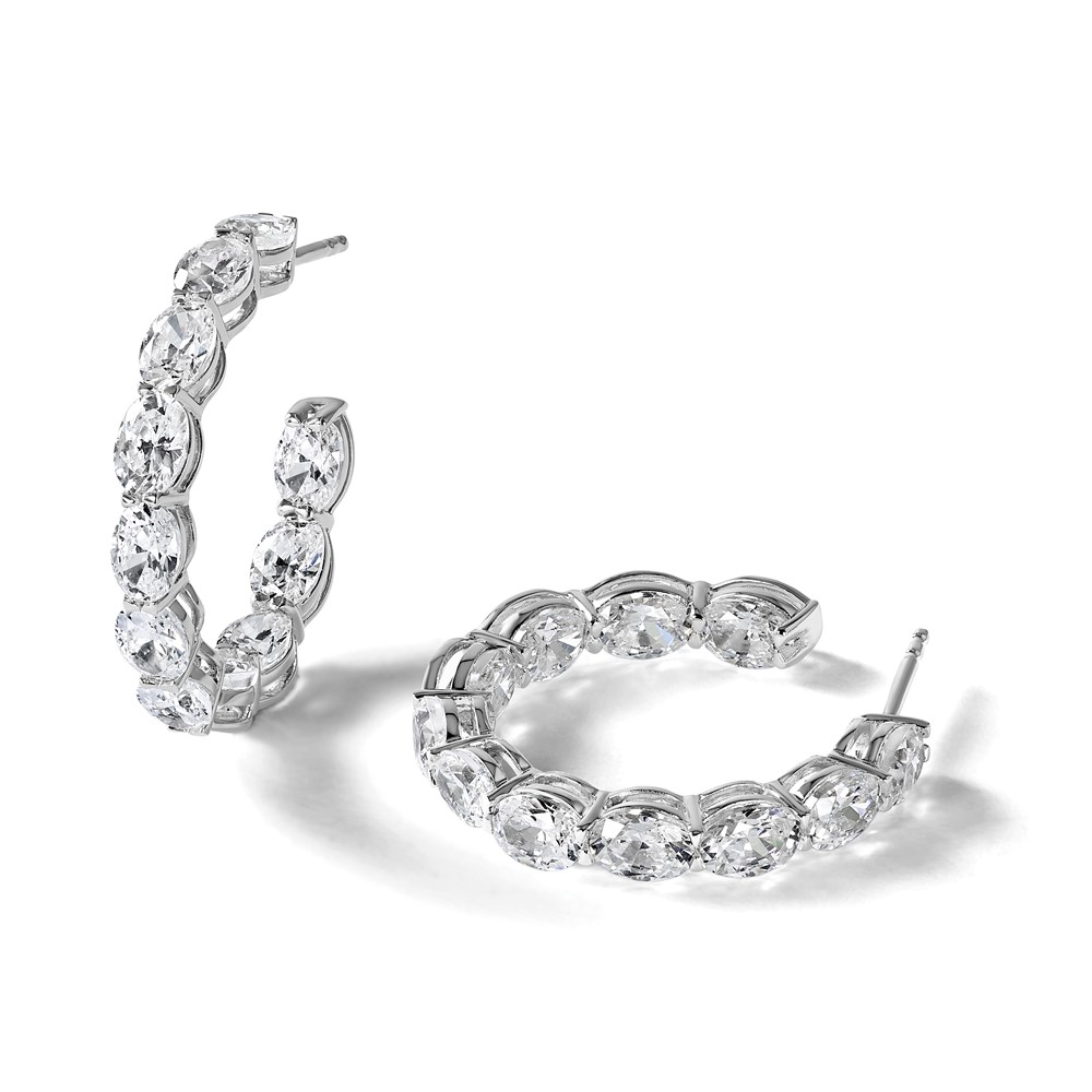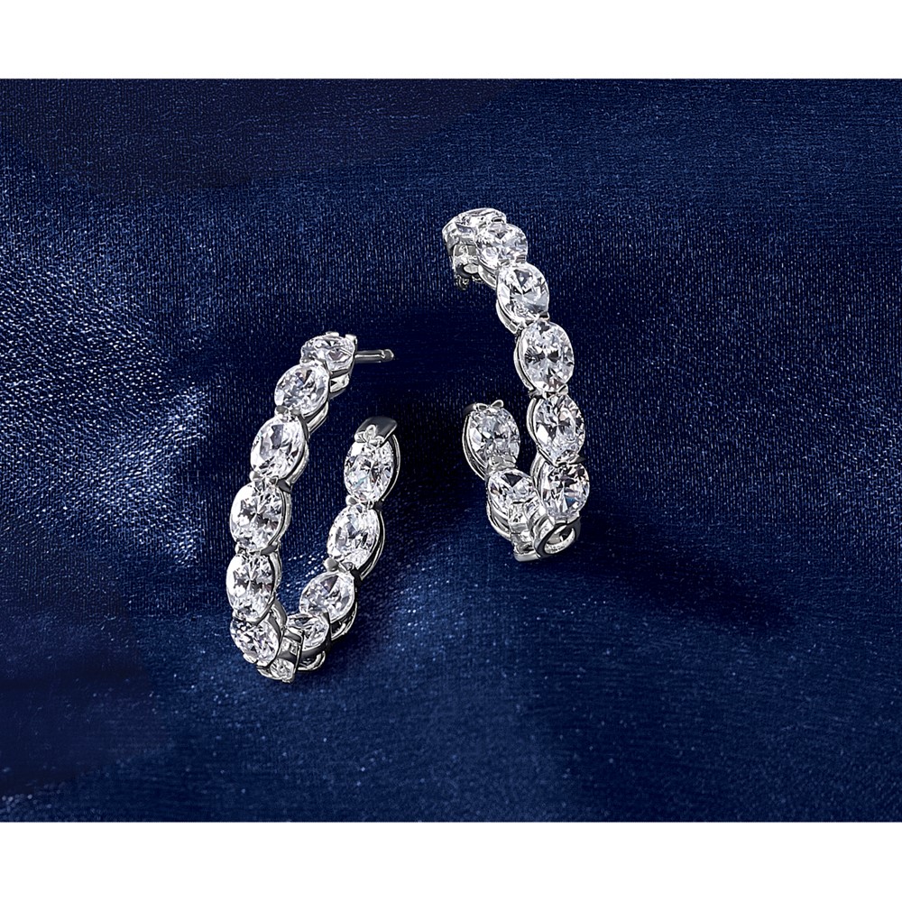 14k White Gold 6 carat Lab Grown Diamond VS/SI+ G+ Oval Complete In and Out Hoop Earrings