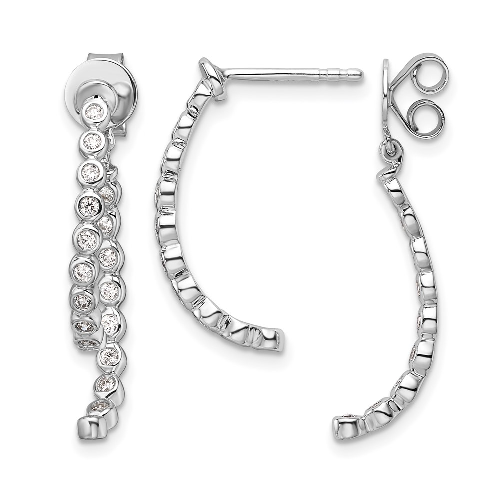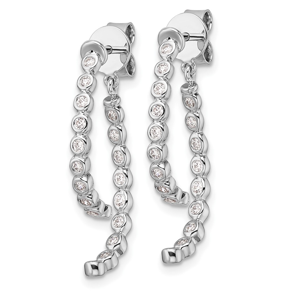 14K White Gold Polished 3/8 carat Diamond Bezel Front and Back Dangle Earrings