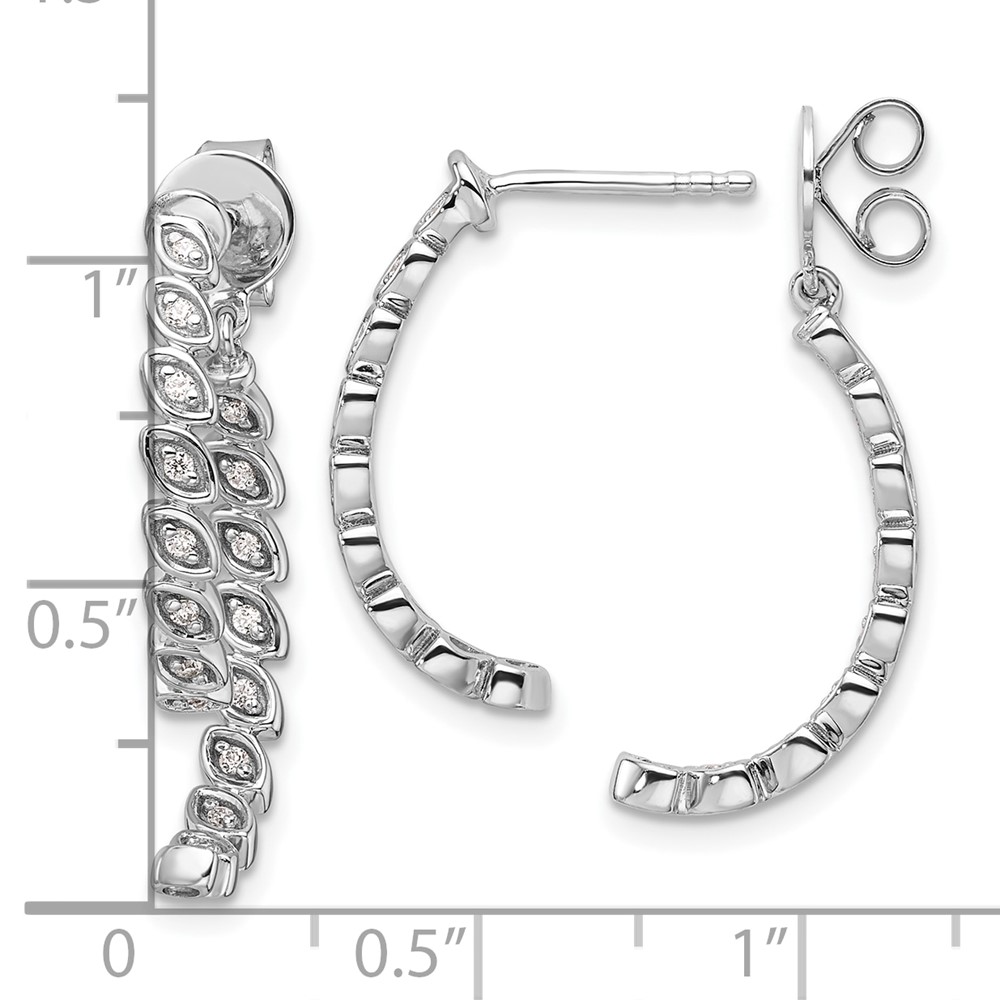 White Ice Sterling Silver Rhodium-plated Diamond Star Dangle J-Hoop Post Earrings