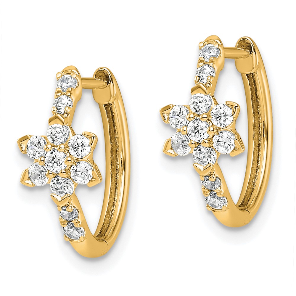 True Origin 14K Yellow Gold 3/8 carat Lab Grown Diamond VS+ F+ Flower Hinged Hoop Complete Earrings