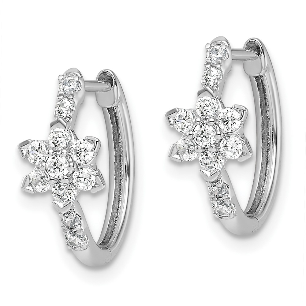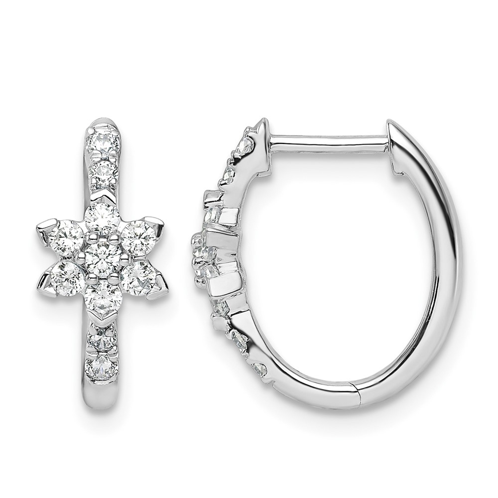 True Origin 14K White Gold 3/8 carat Lab Grown Diamond VS+ F+ Flower Hinged Hoop Complete Earrings