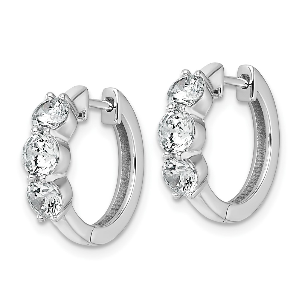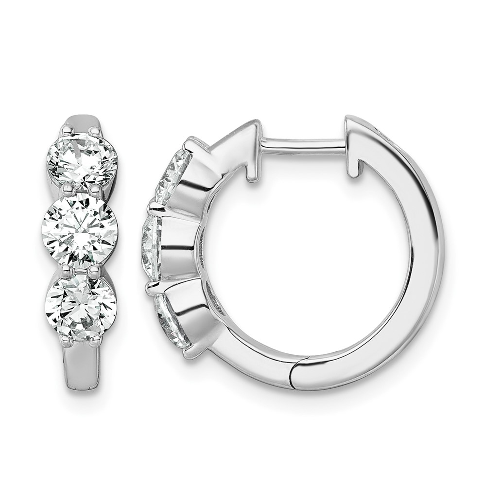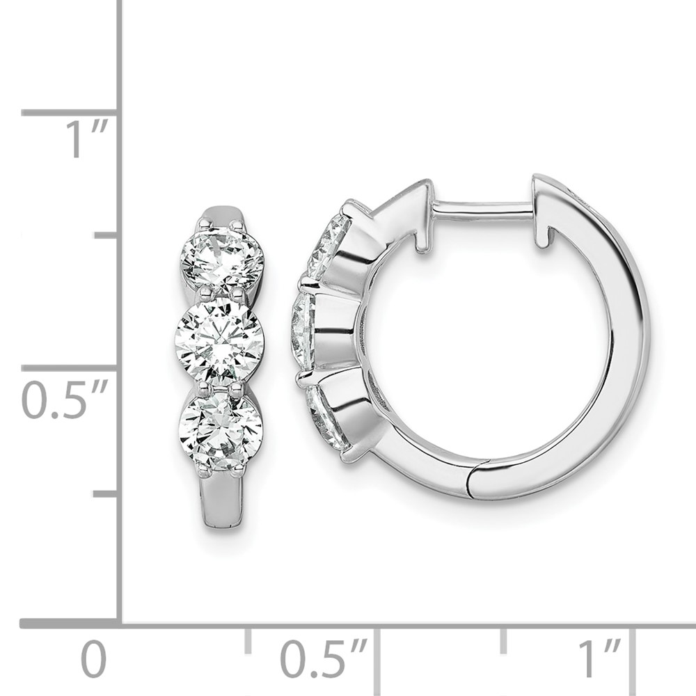 True Origin 14K White Gold 1 7/8 carat Lab Grown Diamond VS+ F+ Three Stone Hinged Hoop Complete Earrings