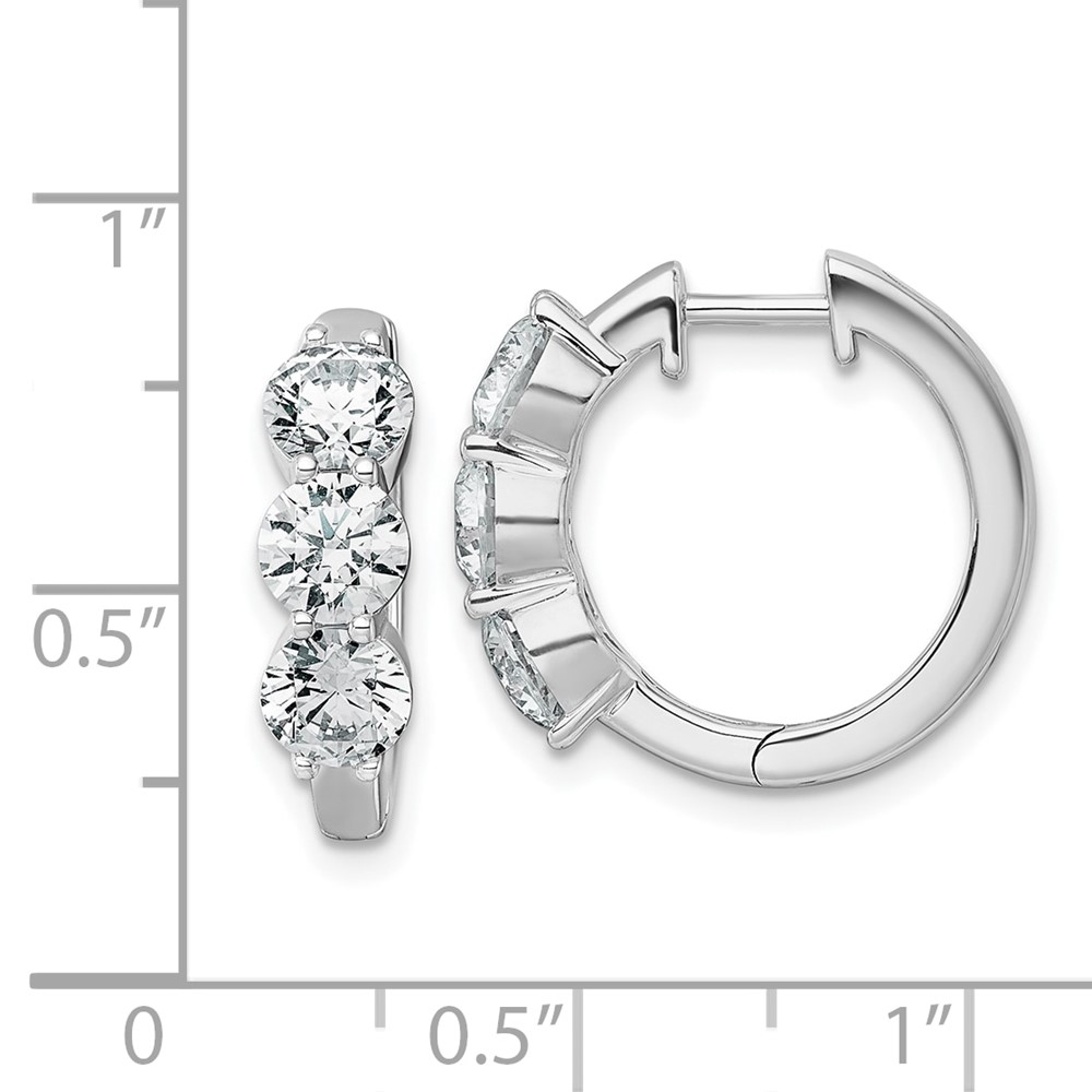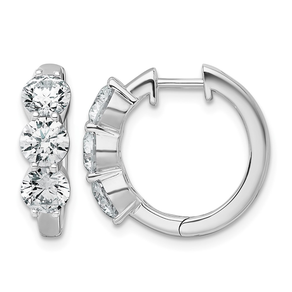 True Origin 14K White Gold 3 carat Lab Grown Diamond VS+ F+ Three Stone Hinged Hoop Complete Earrings