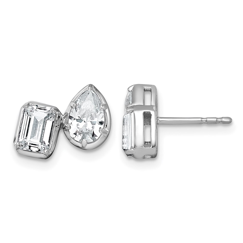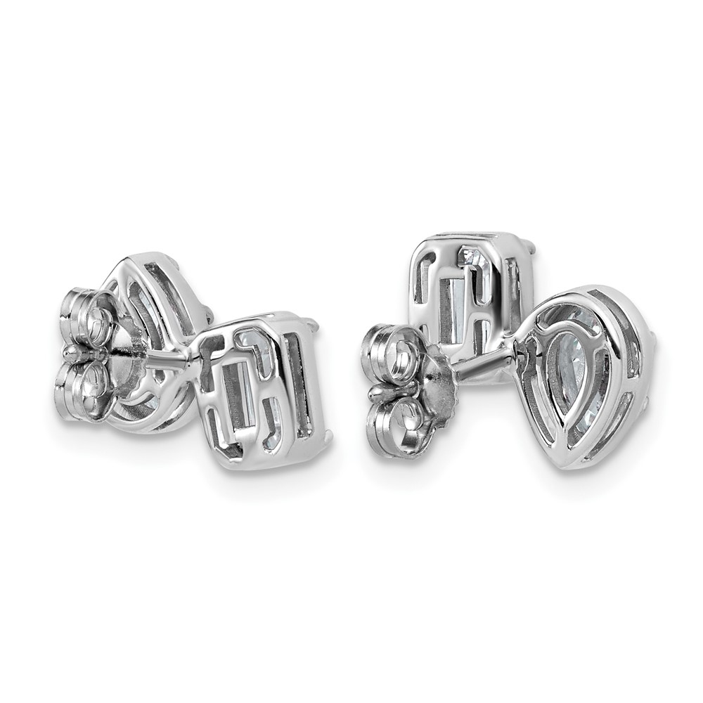 14k White Gold 2 carat Lab Grown Diamond VS+ F+ Complete Emerald and Pear Two Stone Post Earrings