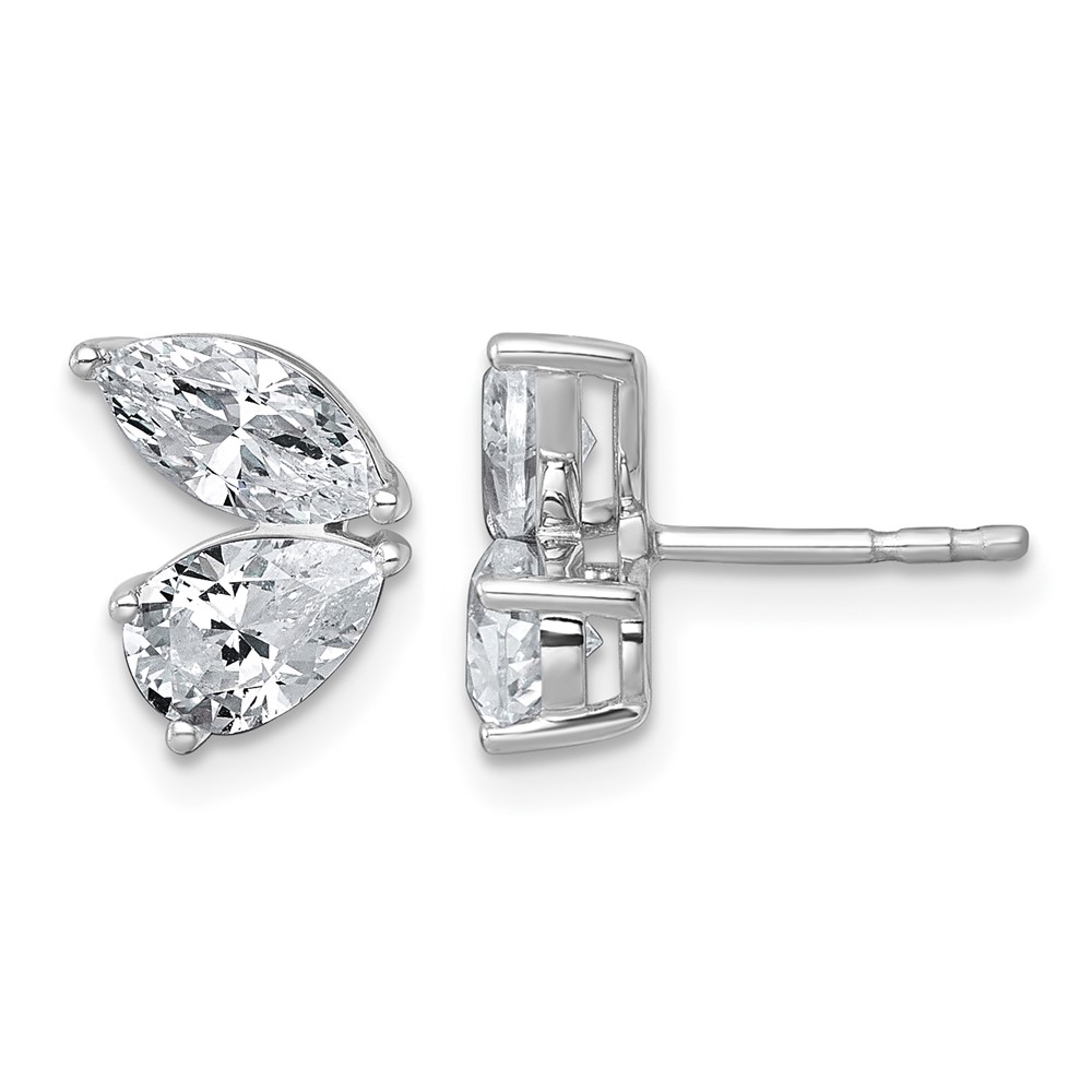 14k White Gold 2 carat Lab Grown Diamond VS+ F+ Complete Marquise and Pear Two Stone Post Earrings