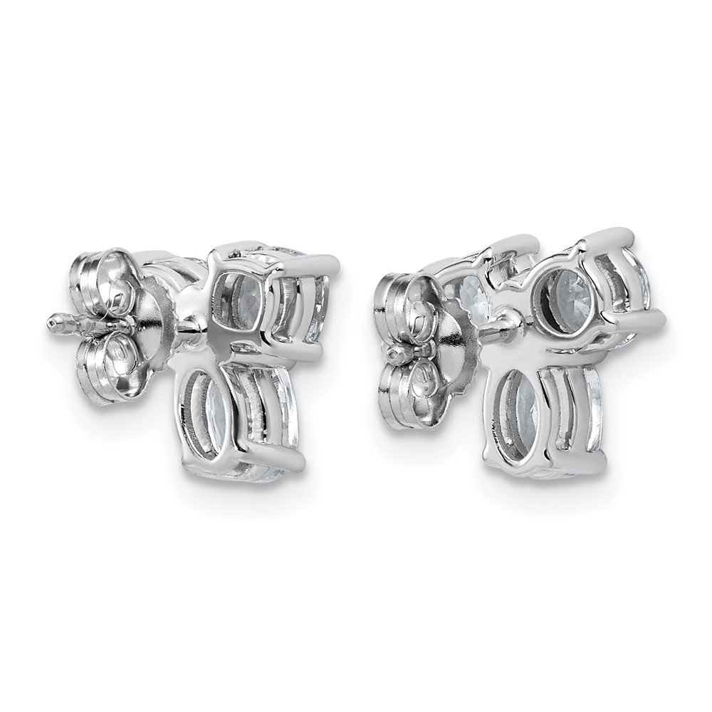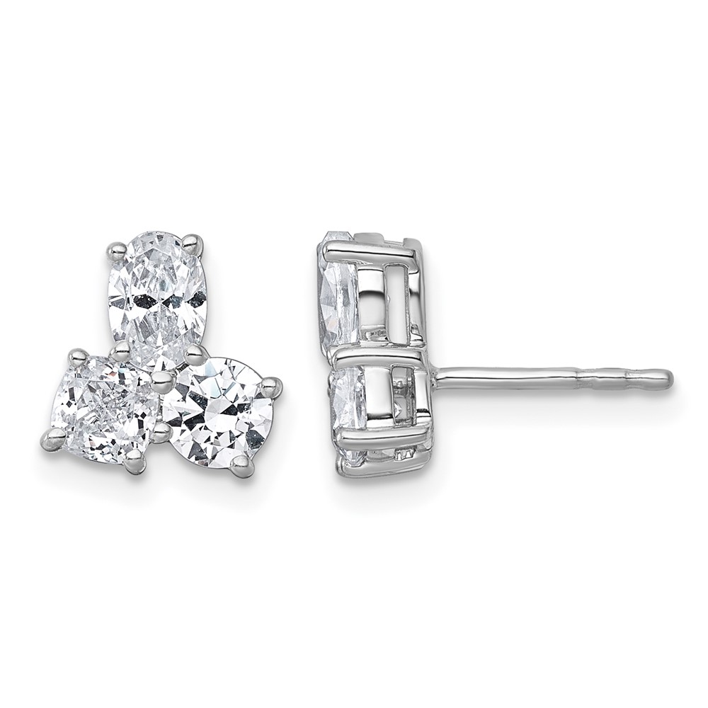 14k White Gold 1 7/8 carat Lab Grown Diamond VS+ F+ Complete Cushion Round and Oval Three Stone Post Earrings