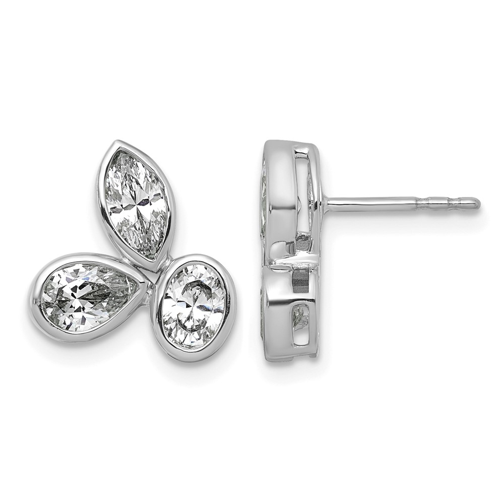 14k White Gold 2 carat Lab Grown Diamond VS+ F+ Complete Oval Pear and Marquise Three Stone Post Earrings
