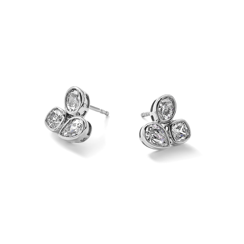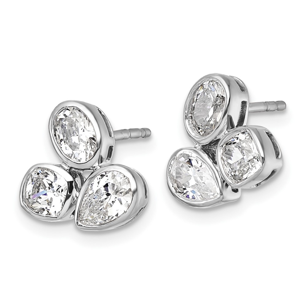 14k White Gold 2 carat Lab Grown Diamond VS+ F+ Complete Oval Pear and Cushion Three Stone Post Earrings