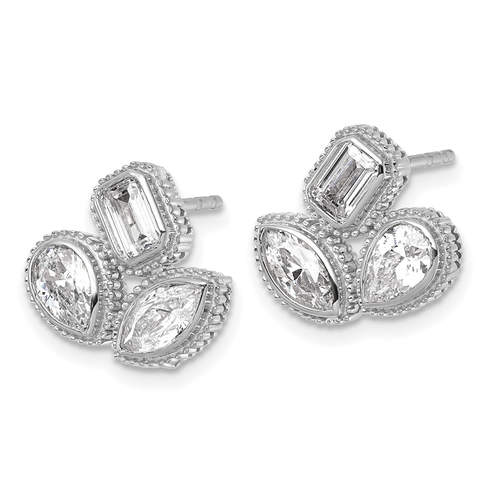 14k White Gold 2 carat Lab Grown Diamond VS+ F+ Complete Emerald Pear and Marquise Three Stone Post Earrings