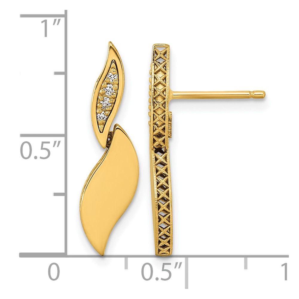 Herco 14k Polished Diamond Leaf Drop Post Earring