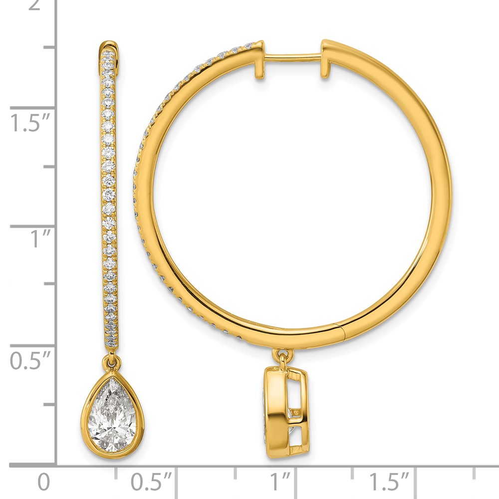 14ky Certified Pear Bezel Dangle Lab Grown Diamond VS+ F+ Hoop Earrings