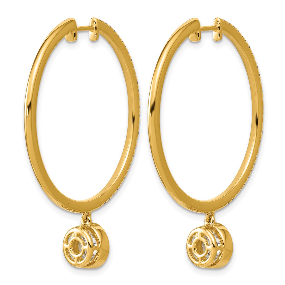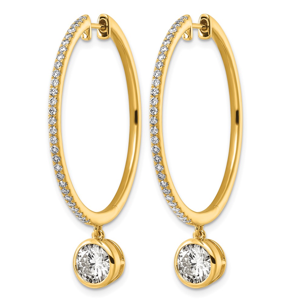 True Origin 14k Yellow Gold 2 5/8 carat Lab Grown Diamond VS+ F+ Complete Round Bezel-Set Dangle In/Out Hoop Earrings
