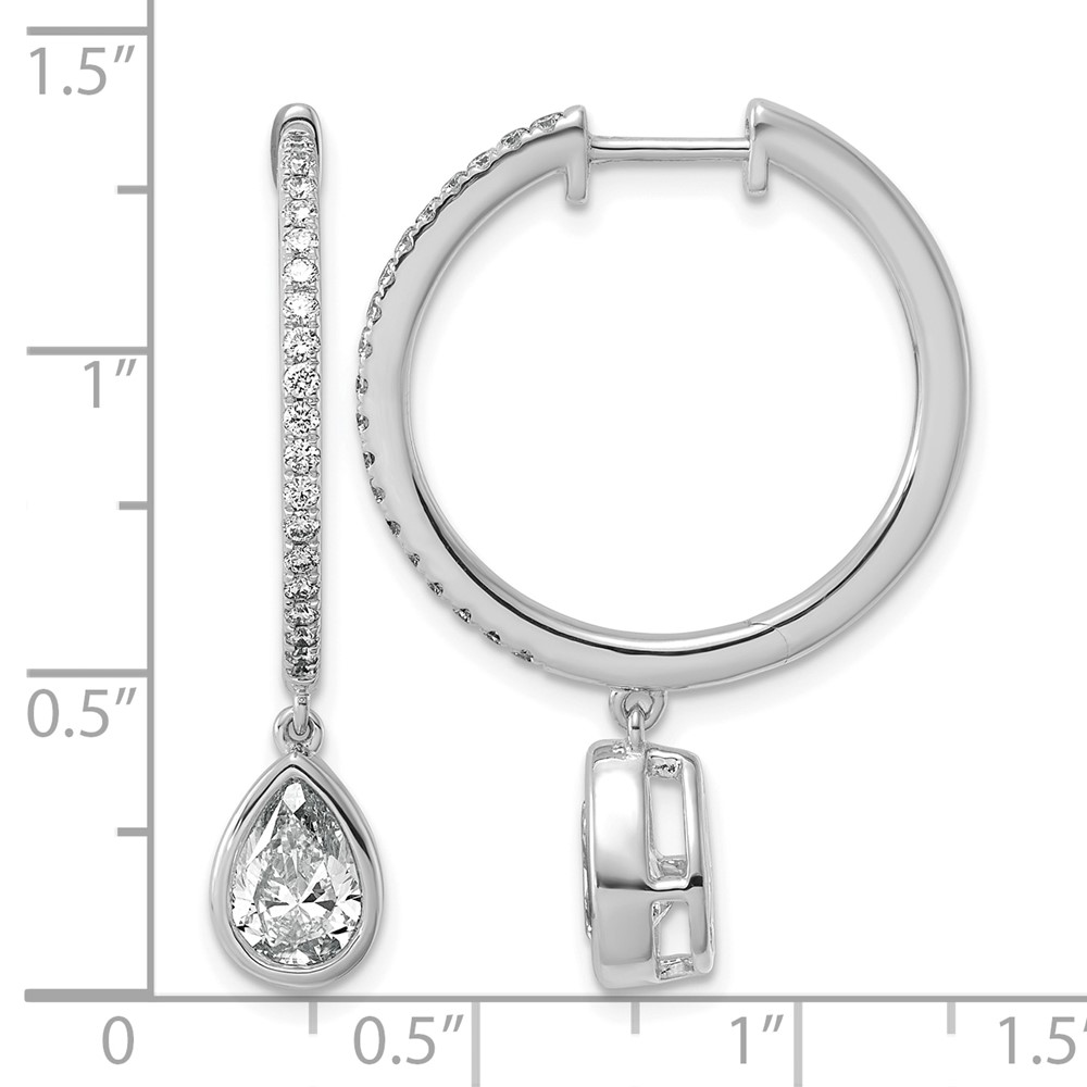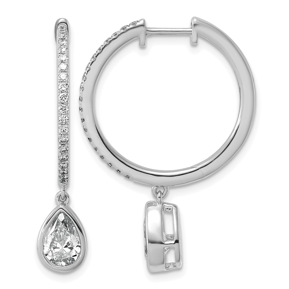 True Origin 14k White Gold 2 3/8 carat Lab Grown Diamond VS+ F+ Complete Pear Bezel-Set Dangle In/Out Hoop Earrings